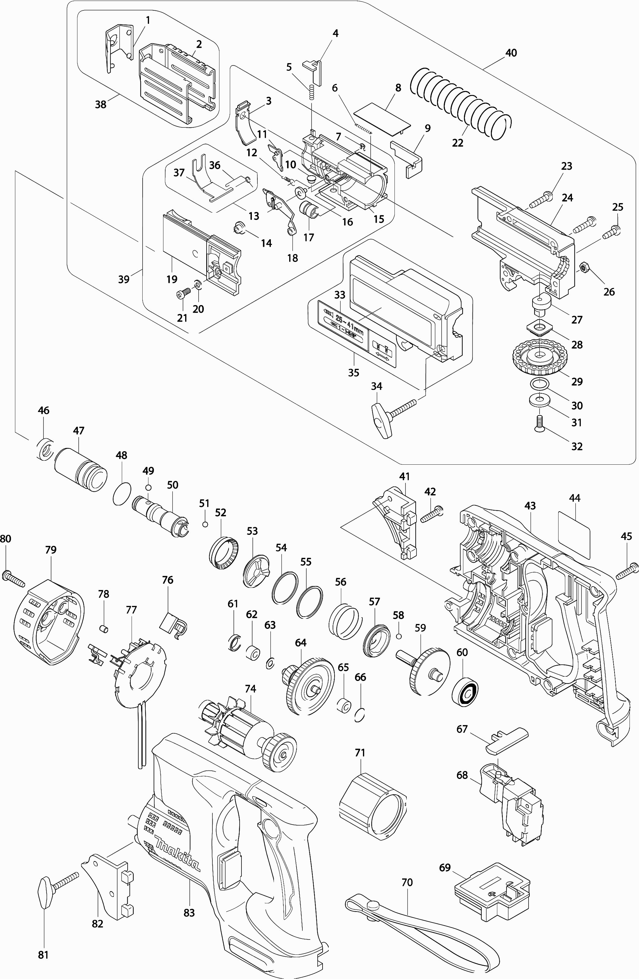 Here you will find all available parts and drawings of the 'Makita BFR440'. From here you can order all desired parts directly. Many parts must be ordered from the manufacturer, depending on the brand, this takes one to four weeks. All the information we have is on our website, we cannot advise you on what you need, for that you will need to return the machine for repair. Please note the following when ordering: