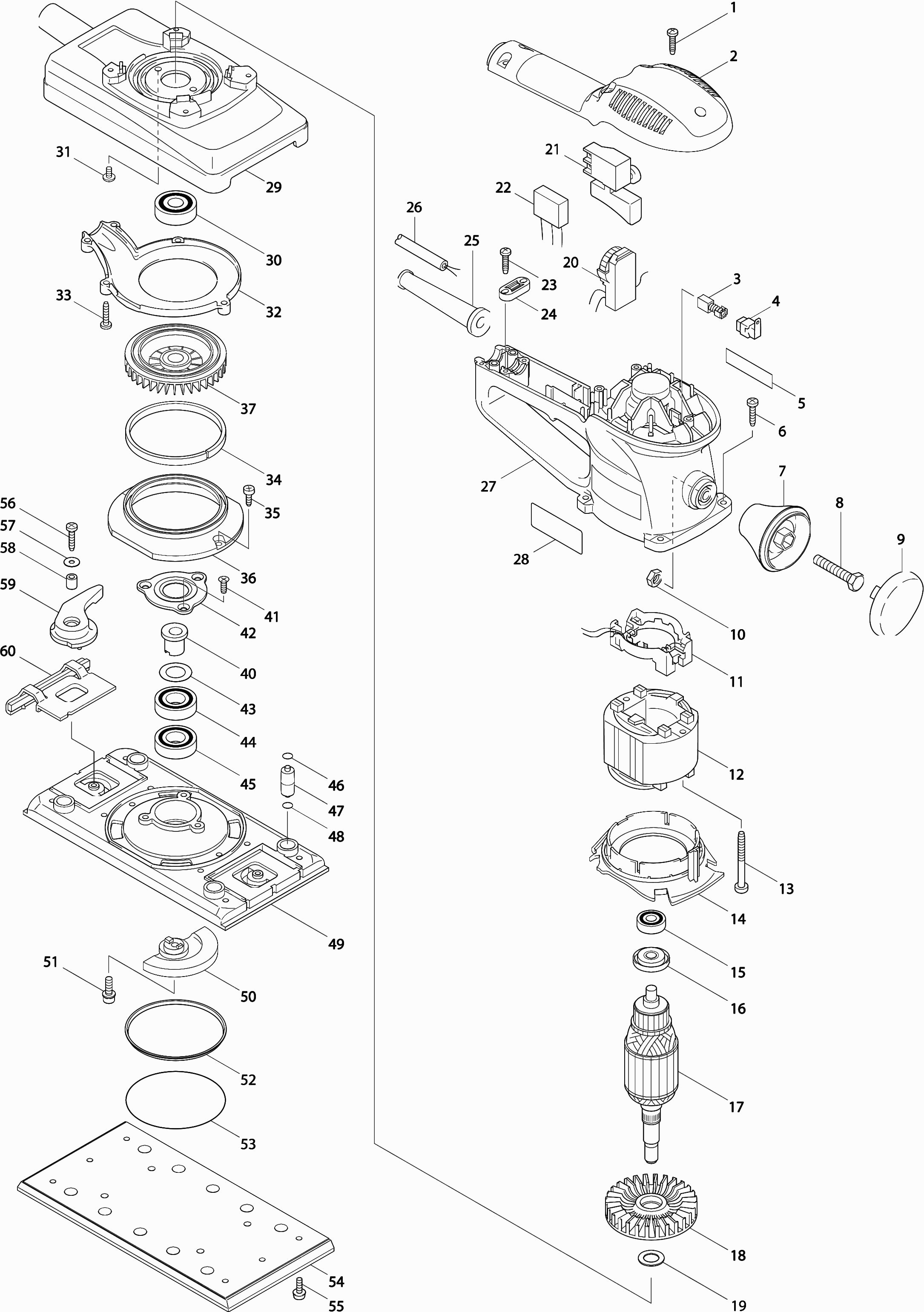 Here you will find all available parts and drawings of the 'Makita BO4900V'. From here you can order all desired parts directly. Many parts must be ordered from the manufacturer, depending on the brand, this takes one to four weeks. All the information we have is on our website, we cannot advise you on what you need, for that you will need to return the machine for repair. Please note the following when ordering: