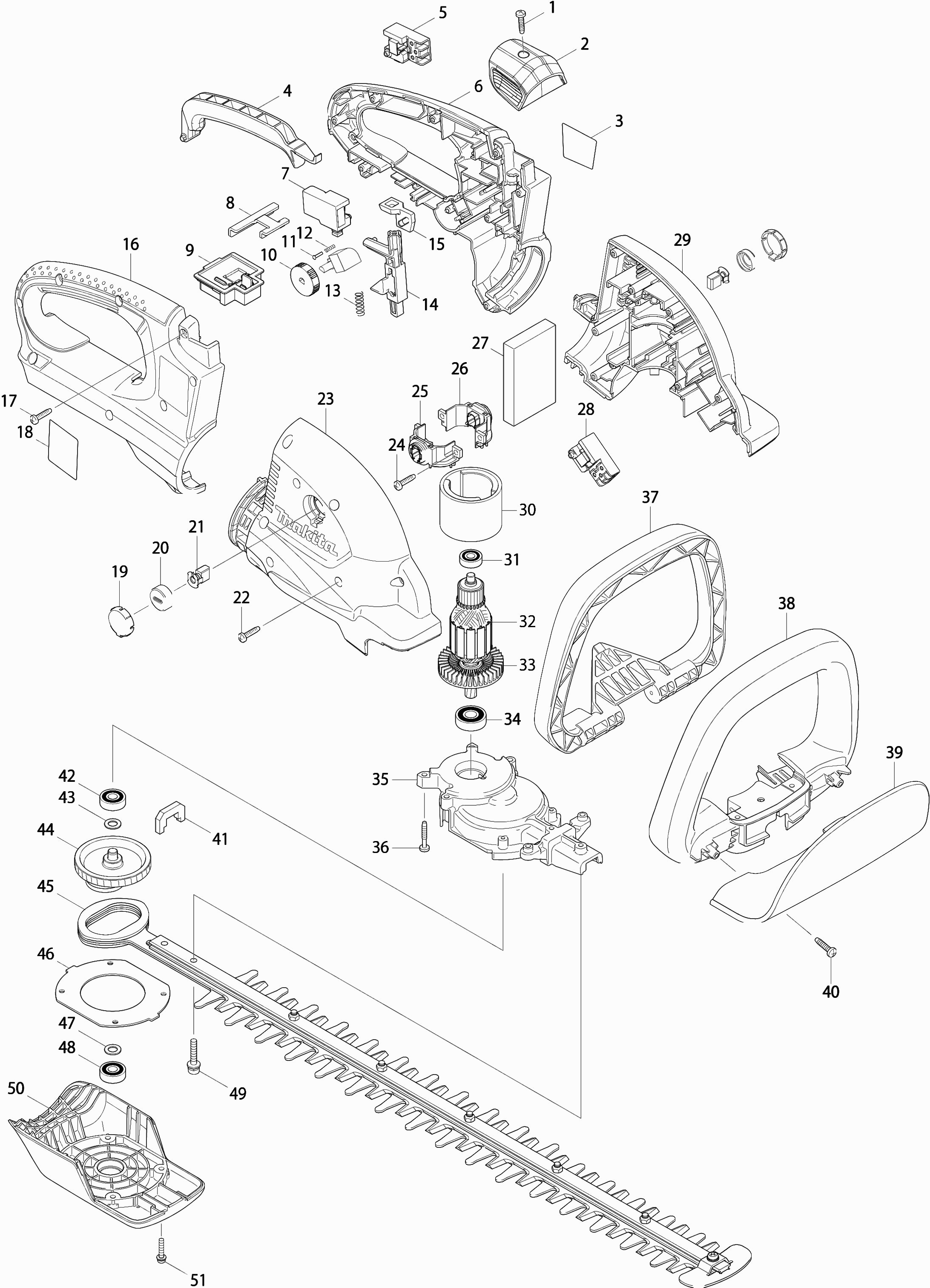 Here you will find all available parts and drawings of the 'Makita BUH550'. From here you can order all desired parts directly. Many parts must be ordered from the manufacturer, depending on the brand, this takes one to four weeks. All the information we have is on our website, we cannot advise you on what you need, for that you will need to return the machine for repair. Please note the following when ordering: