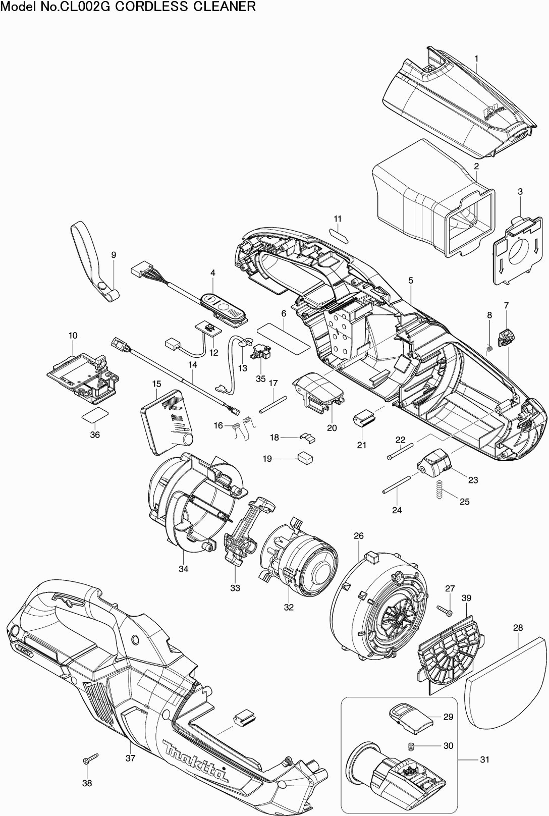 Technical drawing of model Makita CL002G