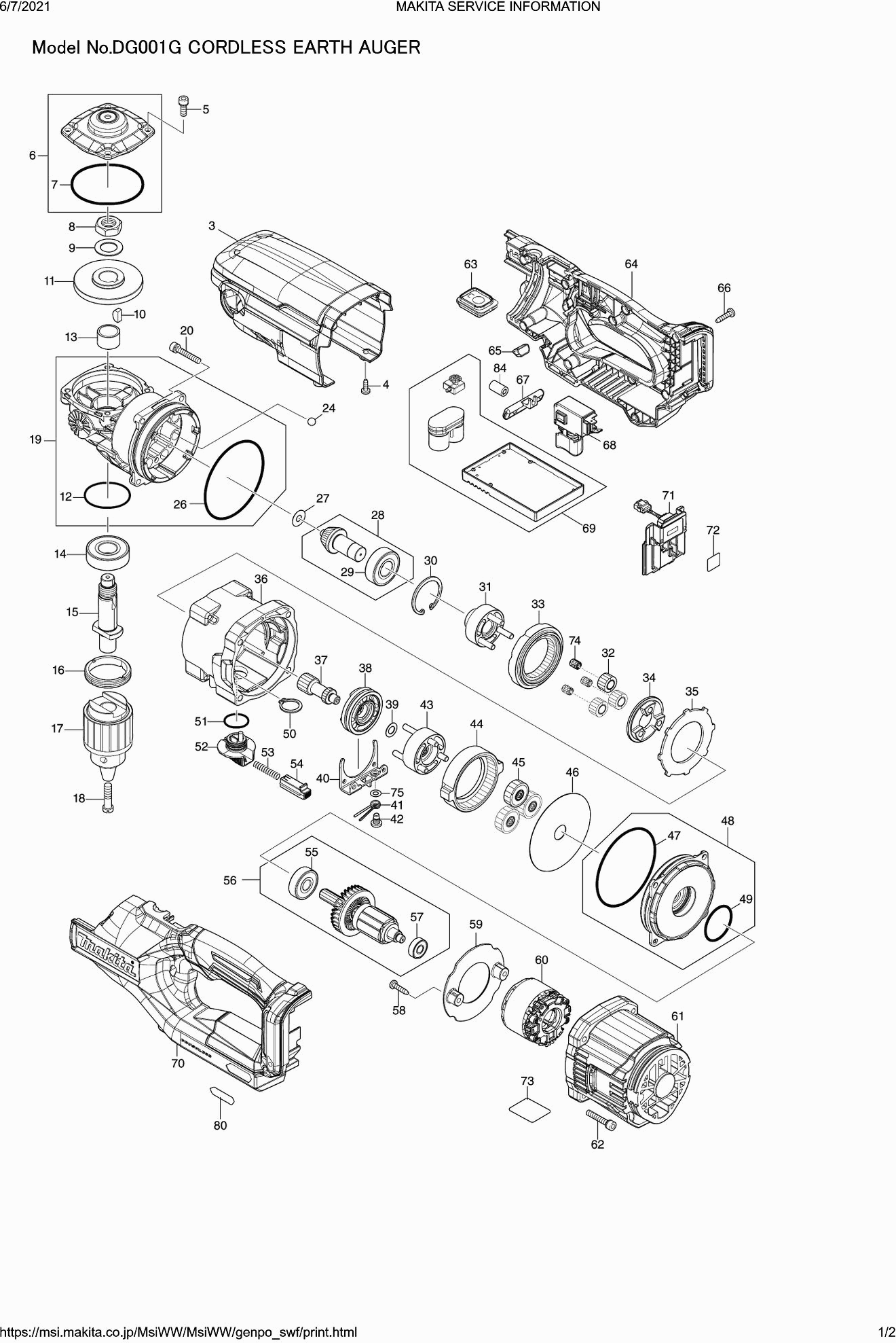 Spare parts list of model Makita DA001G