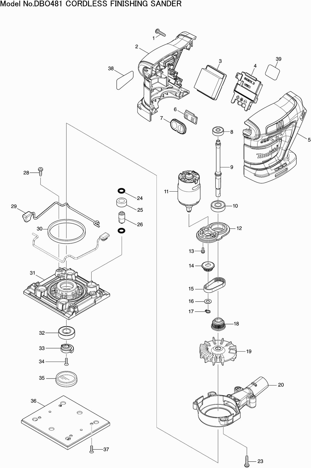 Spare parts list of model Makita DBO481