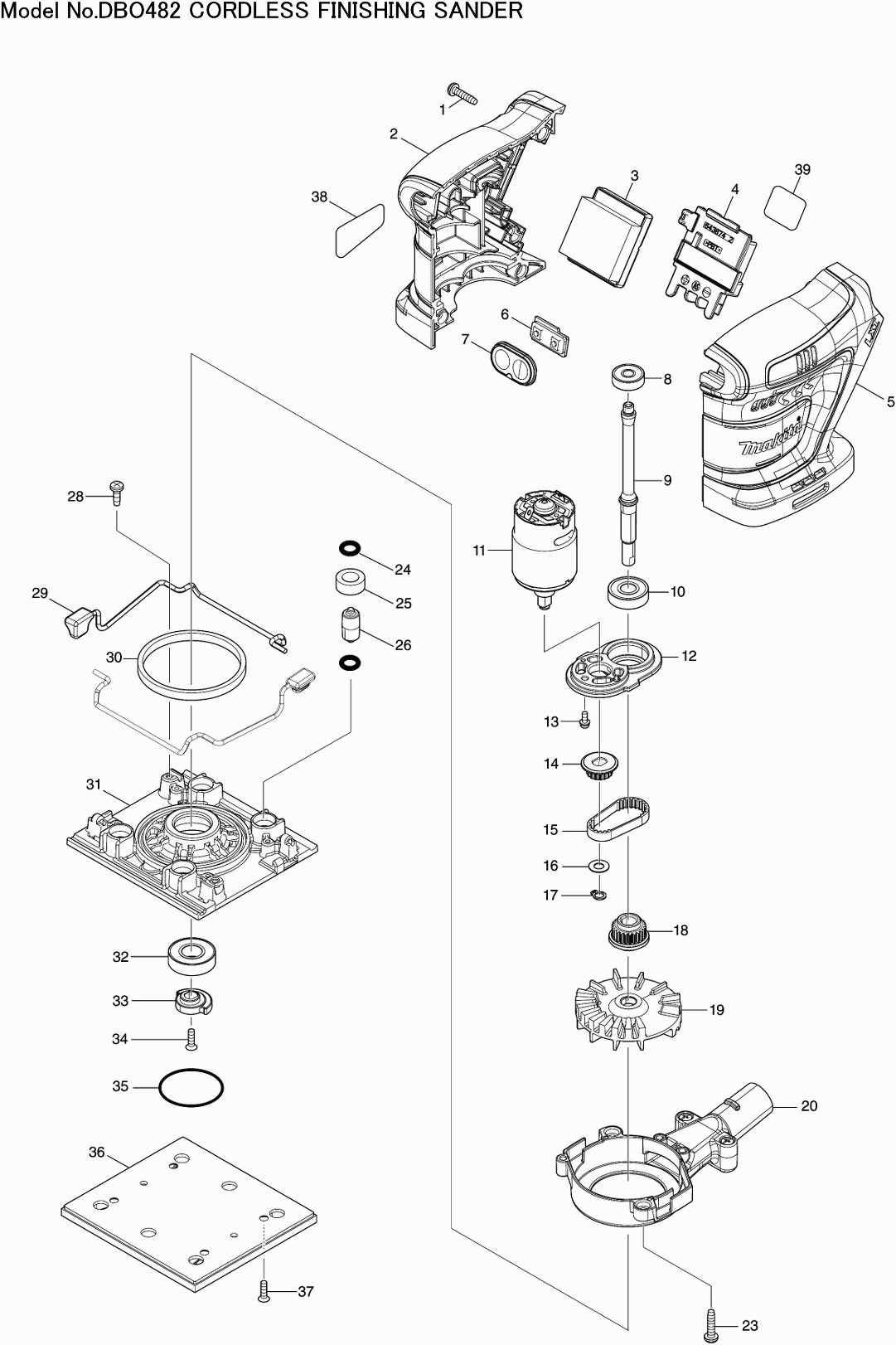 Here you will find all available parts and drawings of the 'Makita DBO482'. From here you can order all desired parts directly. Many parts must be ordered from the manufacturer, depending on the brand, this takes one to four weeks. All the information we have is on our website, we cannot advise you on what you need, for that you will need to return the machine for repair. Please note the following when ordering: