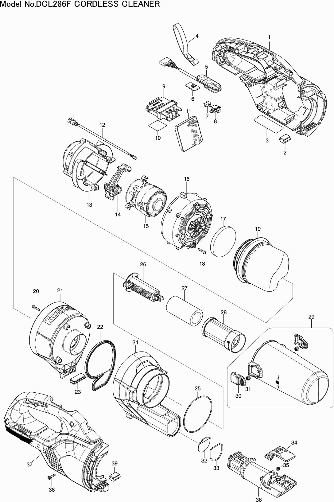 Here you will find all available parts and drawings of the 'Makita DCL286FZW'. From here you can order all desired parts directly. Many parts must be ordered from the manufacturer, depending on the brand, this takes one to four weeks. All the information we have is on our website, we cannot advise you on what you need, for that you will need to return the machine for repair. Please note the following when ordering: