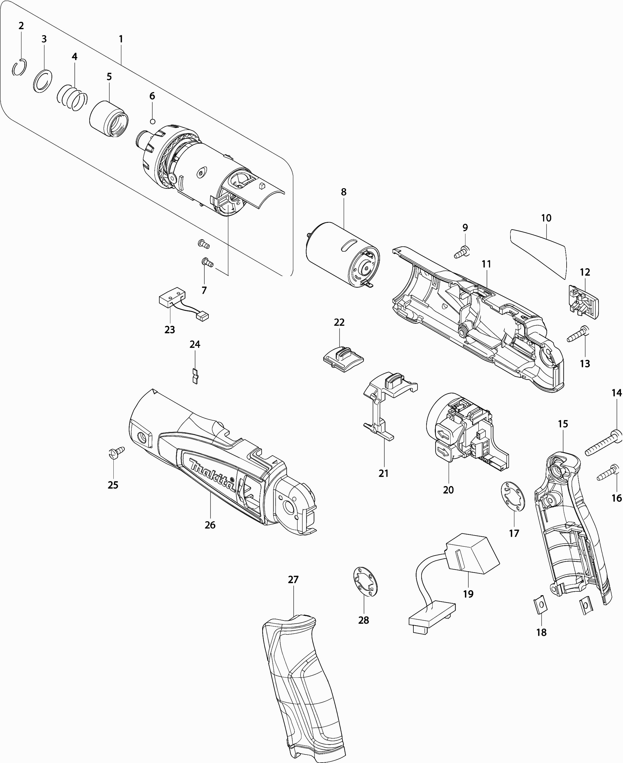 Here you will find all available parts and drawings of the 'Makita DF010D'. From here you can order all desired parts directly. Many parts must be ordered from the manufacturer, depending on the brand, this takes one to four weeks. All the information we have is on our website, we cannot advise you on what you need, for that you will need to return the machine for repair. Please note the following when ordering: