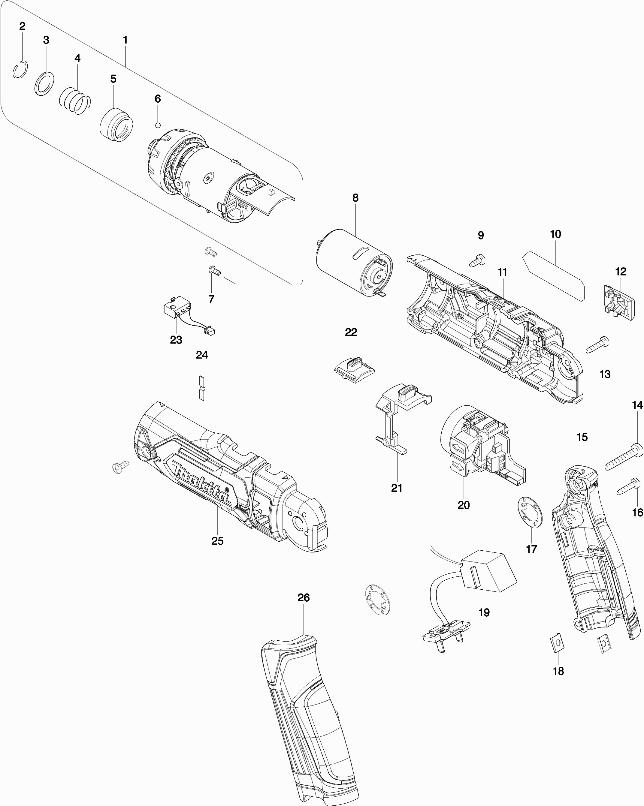 Here you will find all available parts and drawings of the 'Makita DF012D'. From here you can order all desired parts directly. Many parts must be ordered from the manufacturer, depending on the brand, this takes one to four weeks. All the information we have is on our website, we cannot advise you on what you need, for that you will need to return the machine for repair. Please note the following when ordering: