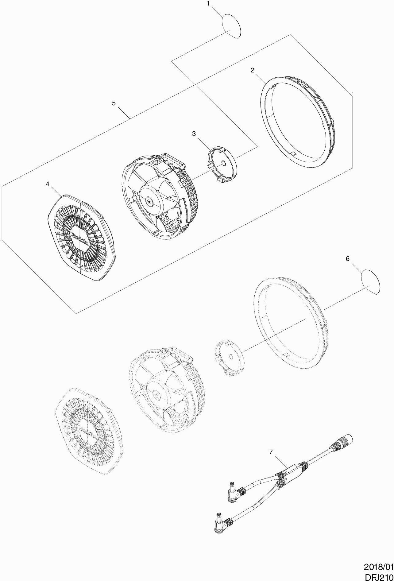 Spare parts list of model Makita DFJ210