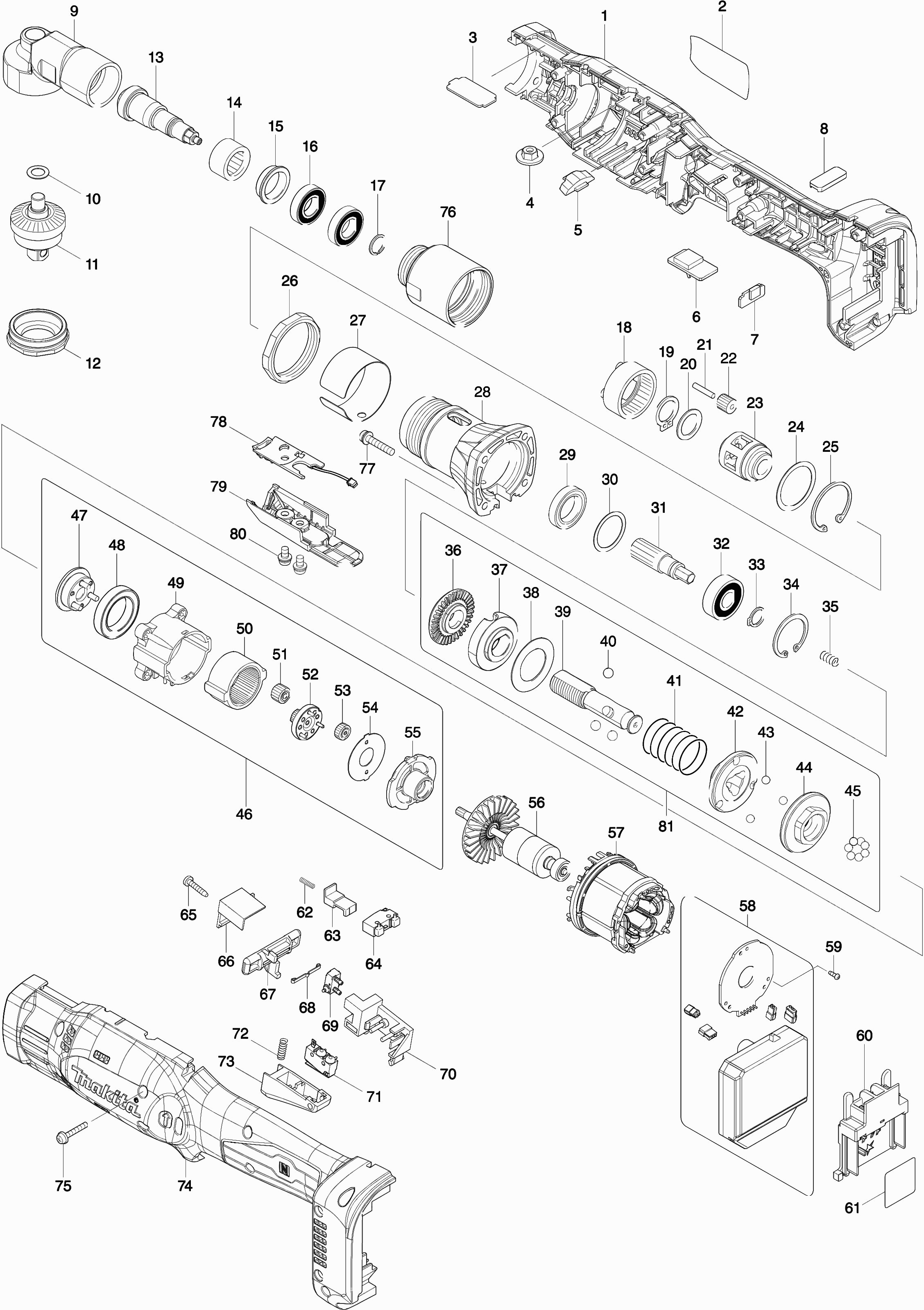 Here you will find all available parts and drawings of the 'Makita DFL403F'. From here you can order all desired parts directly. Many parts must be ordered from the manufacturer, depending on the brand, this takes one to four weeks. All the information we have is on our website, we cannot advise you on what you need, for that you will need to return the machine for repair. Please note the following when ordering: