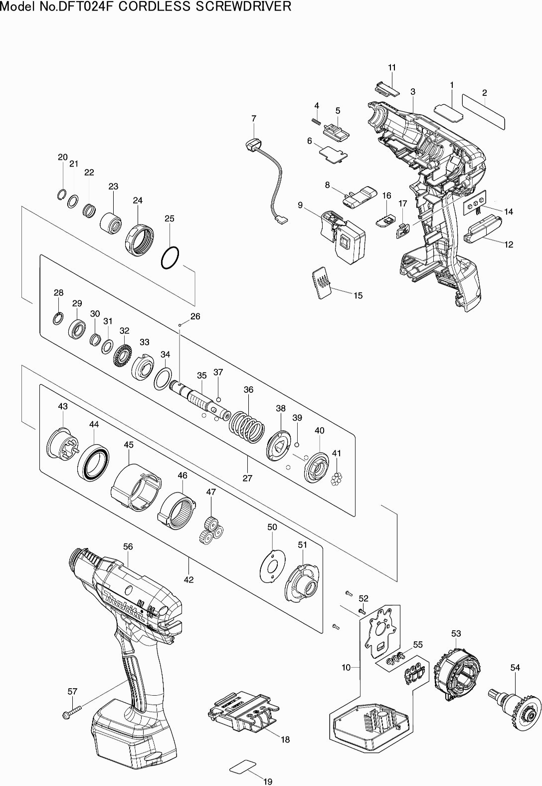 Technical drawing of model Makita DFT024F