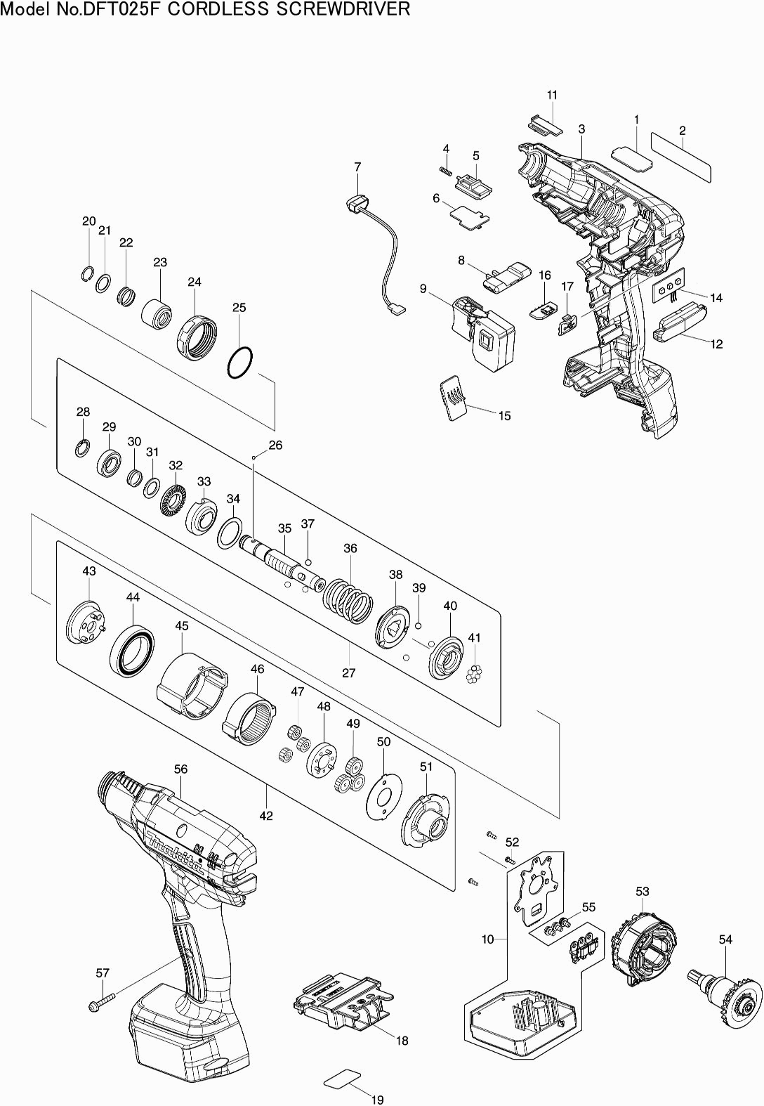 Technical drawing of model Makita DFT025F