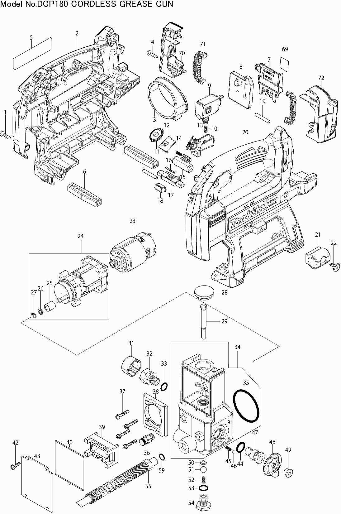 Here you will find all available parts and drawings of the 'Makita DGP180'. From here you can order all desired parts directly. Many parts must be ordered from the manufacturer, depending on the brand, this takes one to four weeks. All the information we have is on our website, we cannot advise you on what you need, for that you will need to return the machine for repair. Please note the following when ordering: