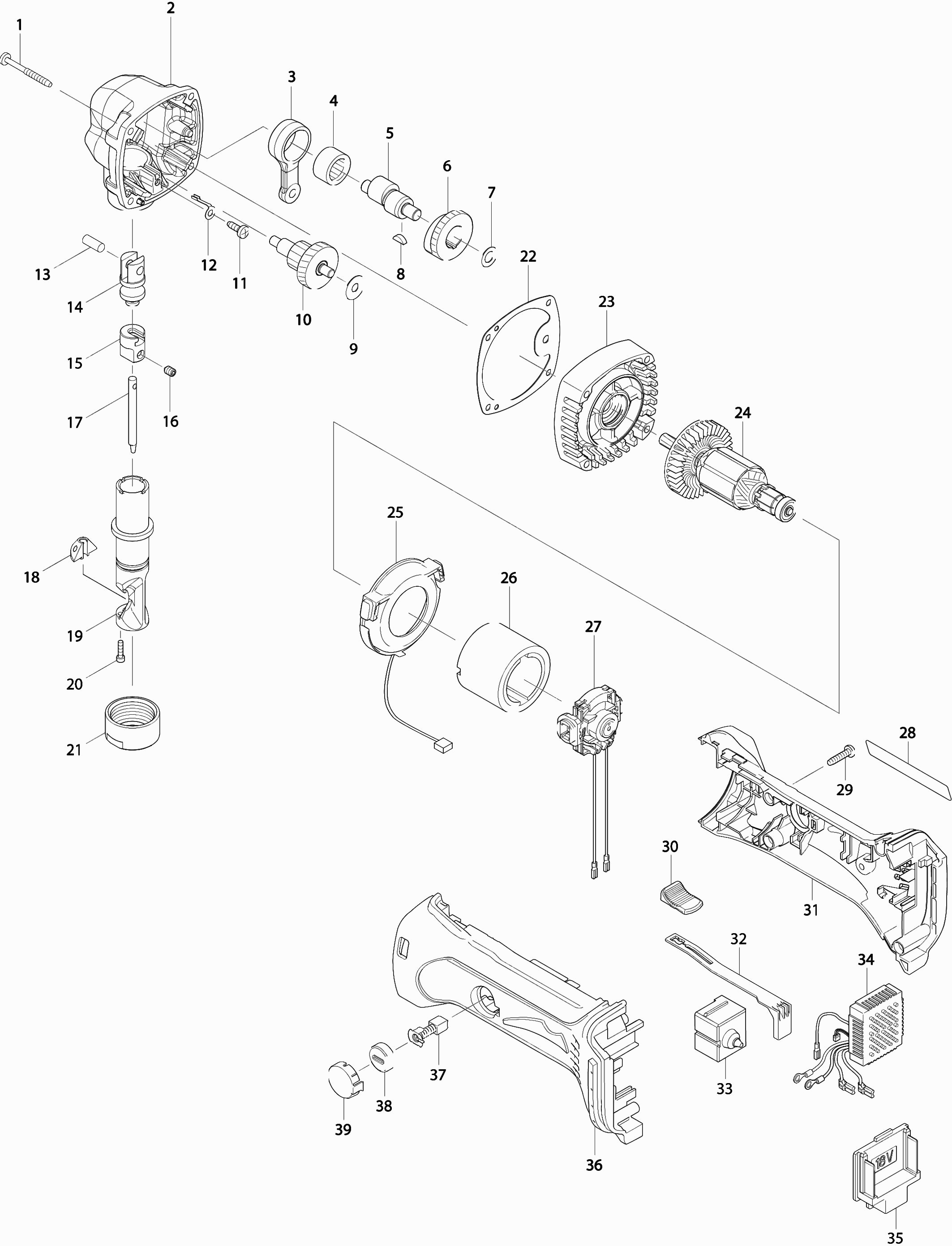 Here you will find all available parts and drawings of the 'Makita DJN161'. From here you can order all desired parts directly. Many parts must be ordered from the manufacturer, depending on the brand, this takes one to four weeks. All the information we have is on our website, we cannot advise you on what you need, for that you will need to return the machine for repair. Please note the following when ordering: