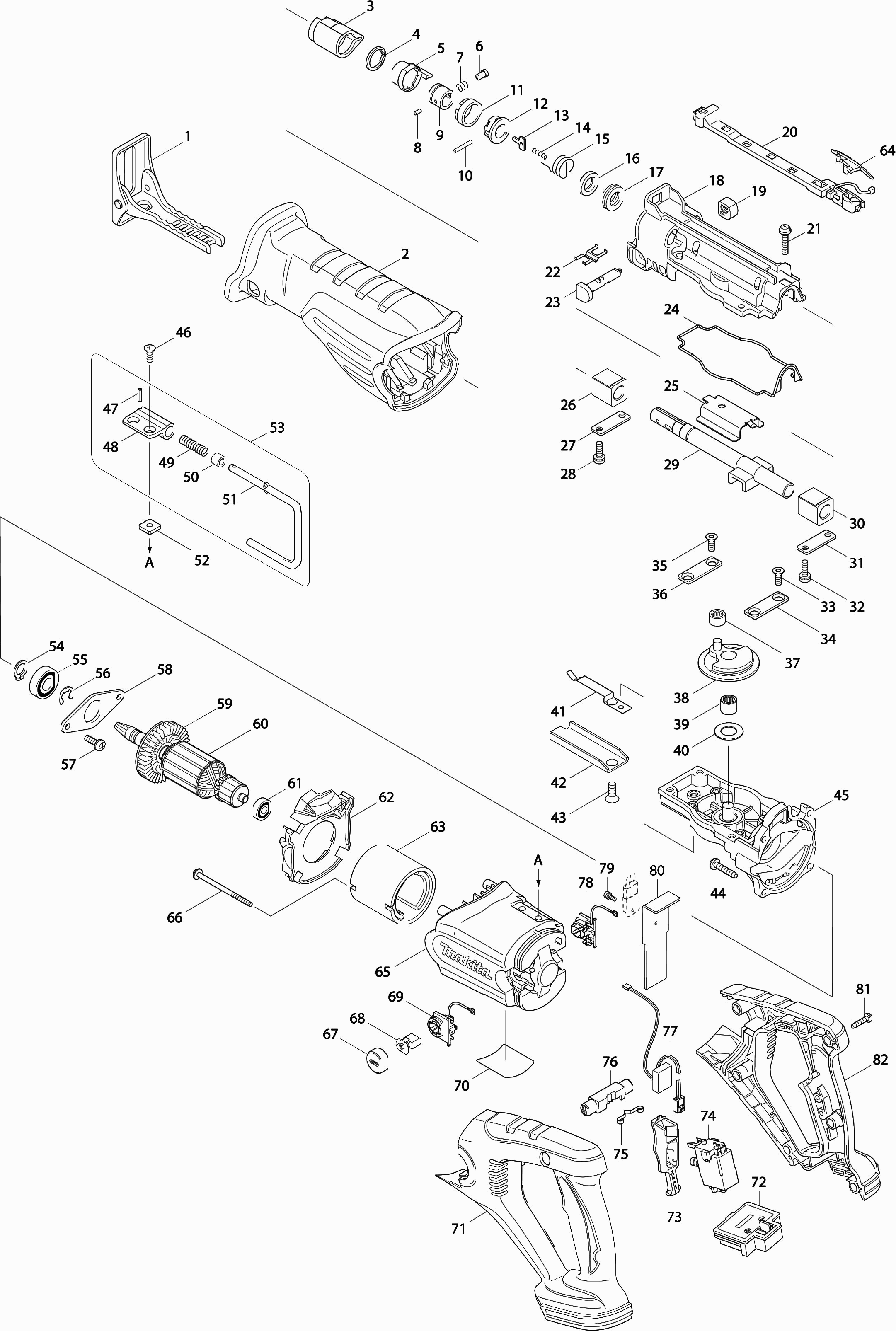 Spare parts list of model Makita DJR181ZK
