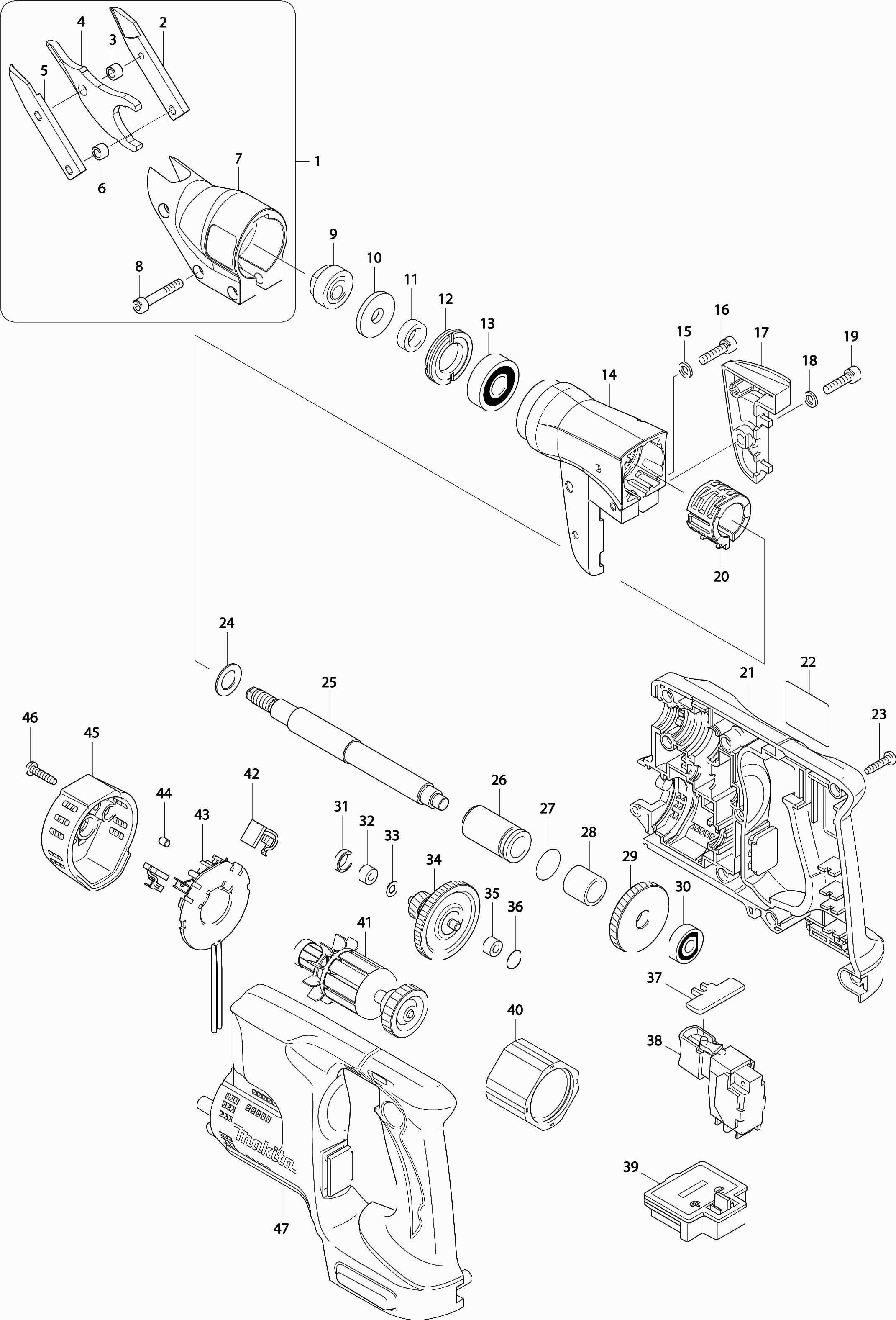 Here you will find all available parts and drawings of the 'Makita DJS130'. From here you can order all desired parts directly. Many parts must be ordered from the manufacturer, depending on the brand, this takes one to four weeks. All the information we have is on our website, we cannot advise you on what you need, for that you will need to return the machine for repair. Please note the following when ordering: