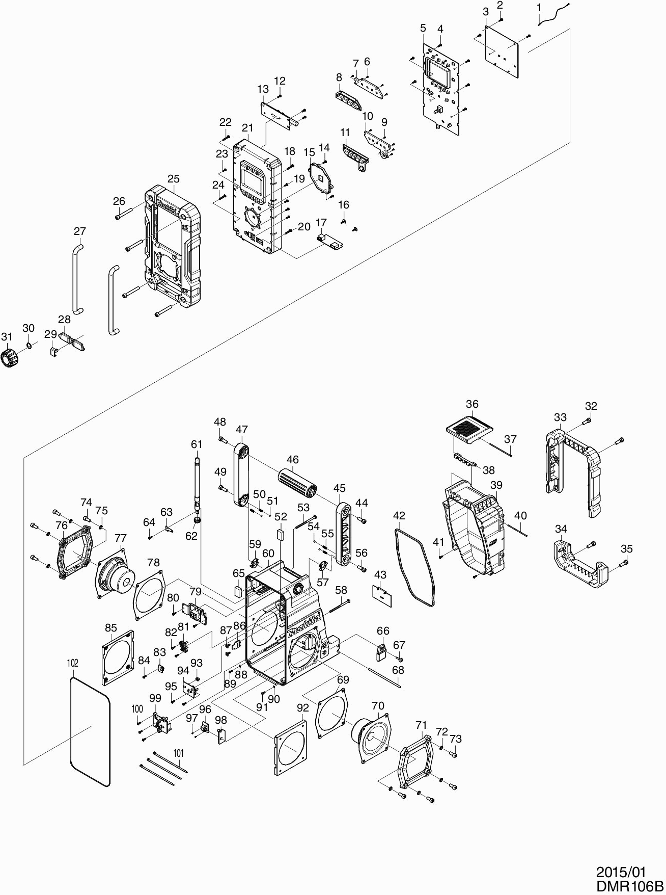 Spare parts list of model Makita DMR106B