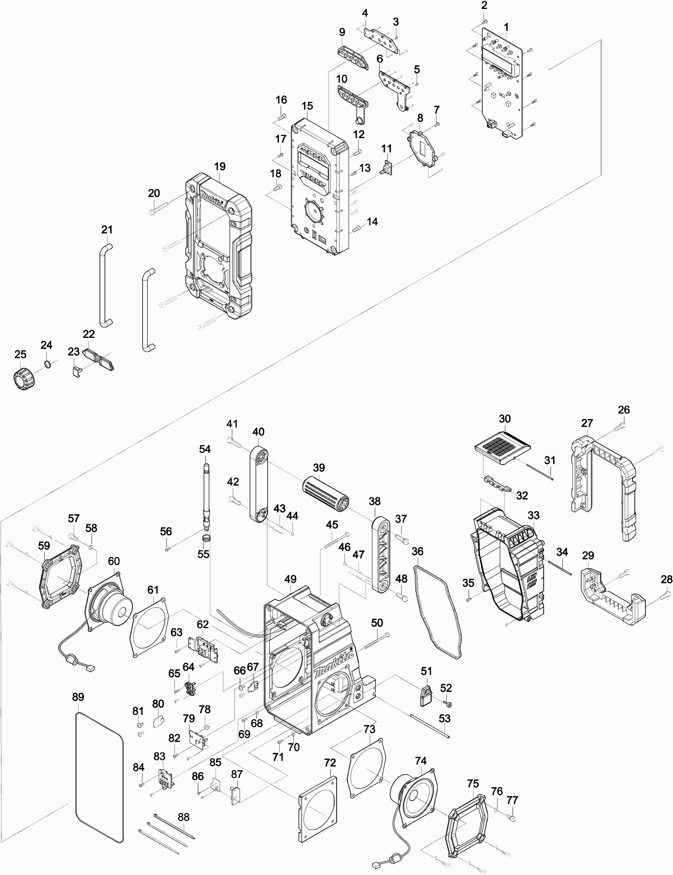 Here you will find all available parts and drawings of the 'Makita DMR112'. From here you can order all desired parts directly. Many parts must be ordered from the manufacturer, depending on the brand, this takes one to four weeks. All the information we have is on our website, we cannot advise you on what you need, for that you will need to return the machine for repair. Please note the following when ordering: