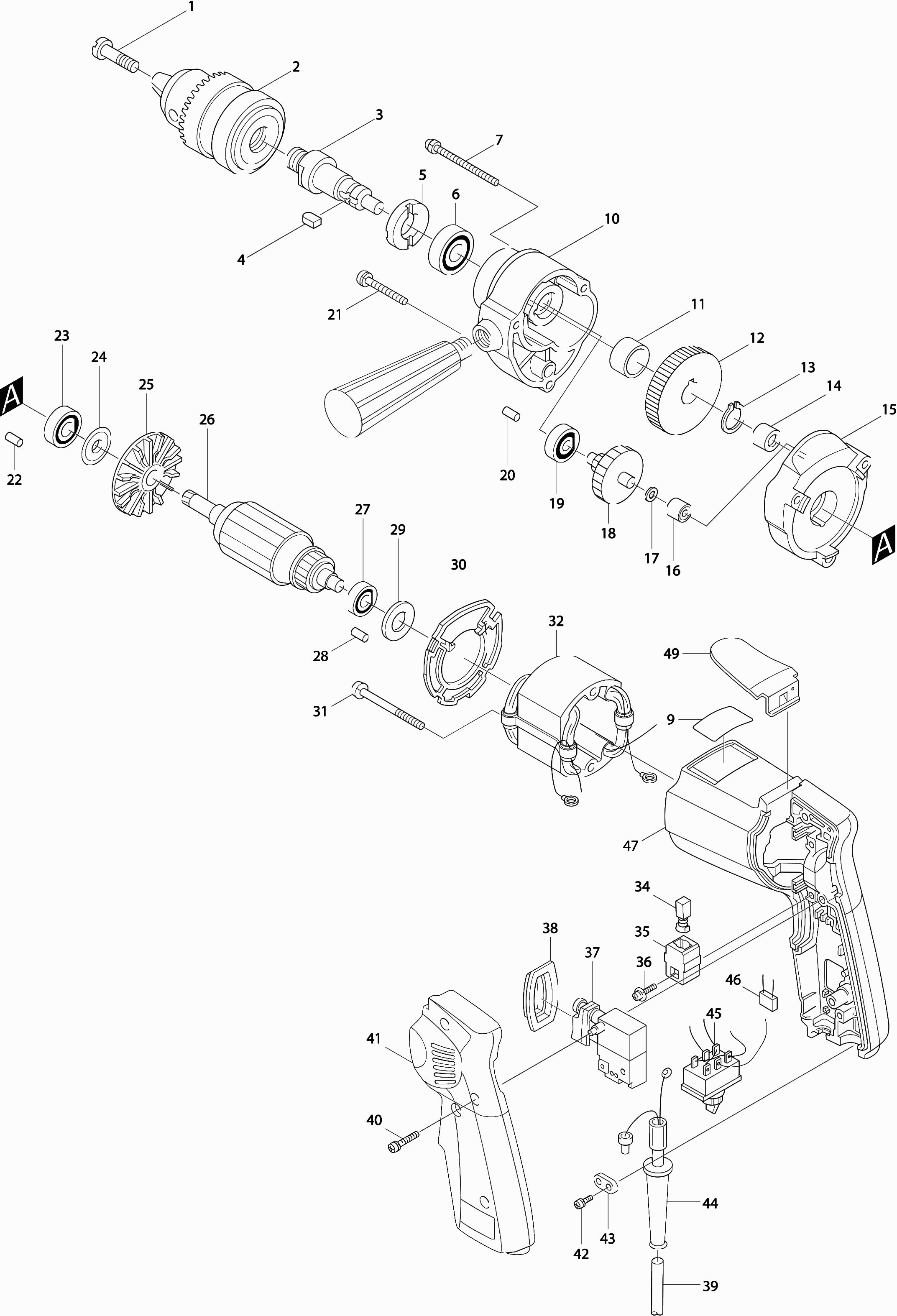 Here you will find all available parts and drawings of the 'Makita DP4700'. From here you can order all desired parts directly. Many parts must be ordered from the manufacturer, depending on the brand, this takes one to four weeks. All the information we have is on our website, we cannot advise you on what you need, for that you will need to return the machine for repair. Please note the following when ordering: