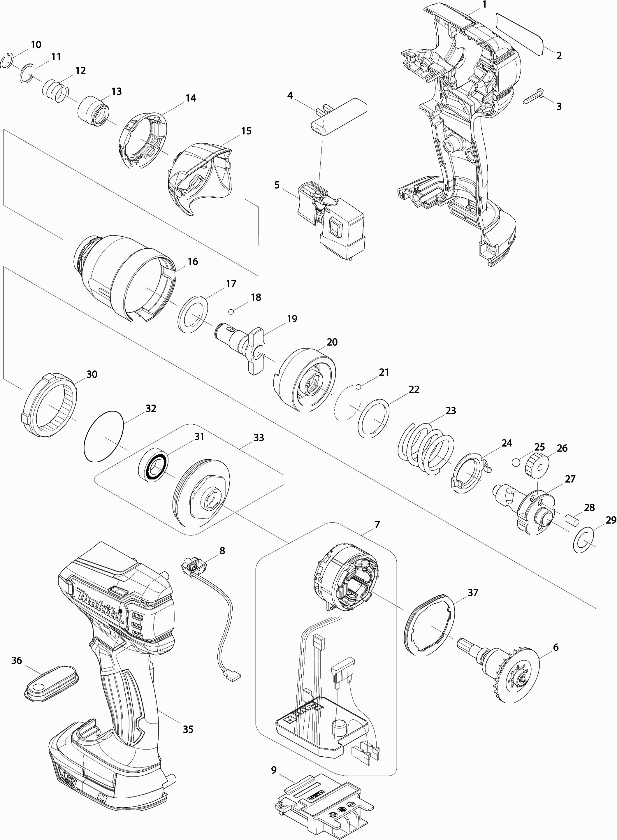 Here you will find all available parts and drawings of the 'Makita DTD147'. From here you can order all desired parts directly. Many parts must be ordered from the manufacturer, depending on the brand, this takes one to four weeks. All the information we have is on our website, we cannot advise you on what you need, for that you will need to return the machine for repair. Please note the following when ordering: