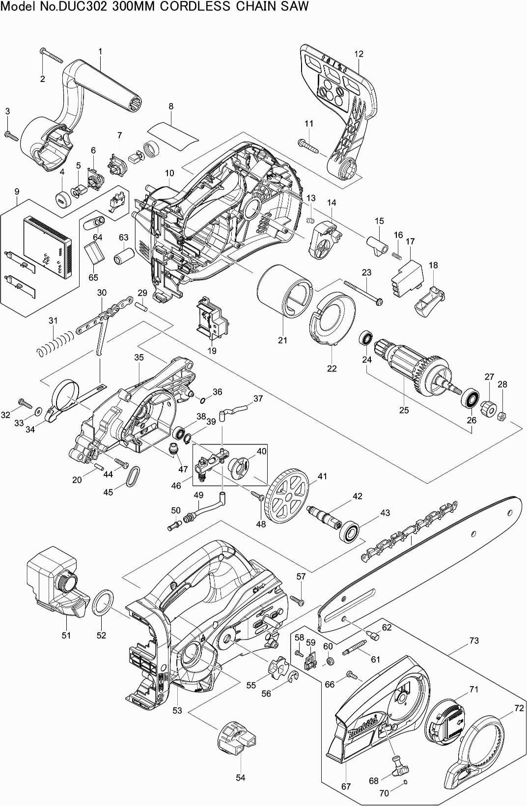 Spare parts list of model Makita DUC302Z