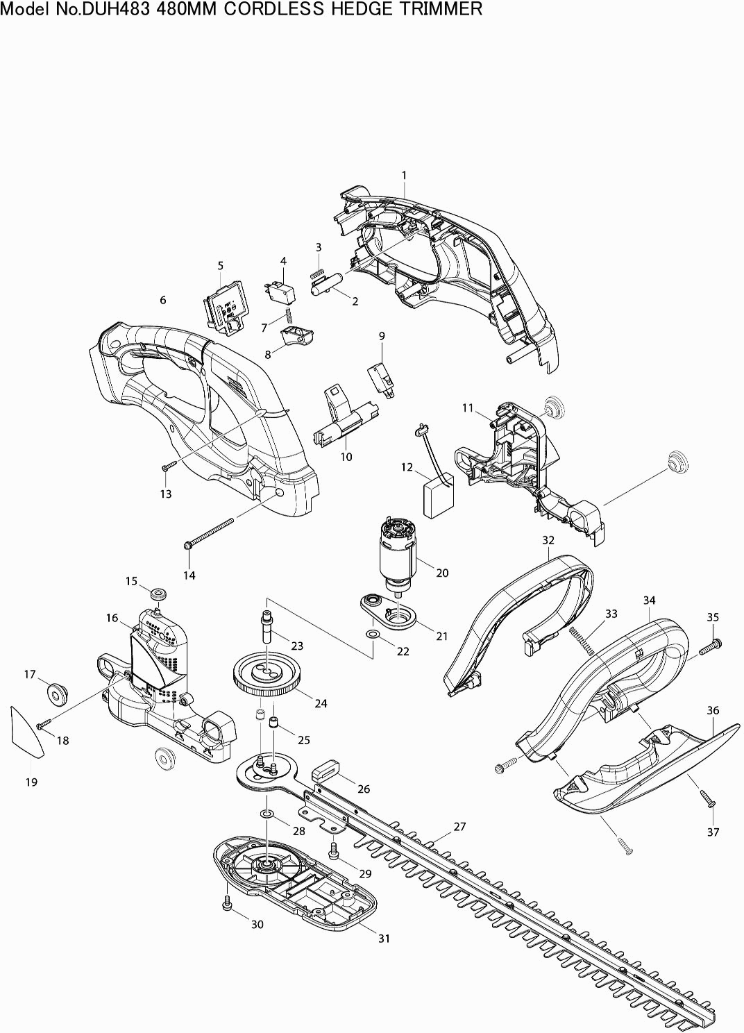 Here you will find all available parts and drawings of the 'Makita DUH483'. From here you can order all desired parts directly. Many parts must be ordered from the manufacturer, depending on the brand, this takes one to four weeks. All the information we have is on our website, we cannot advise you on what you need, for that you will need to return the machine for repair. Please note the following when ordering: