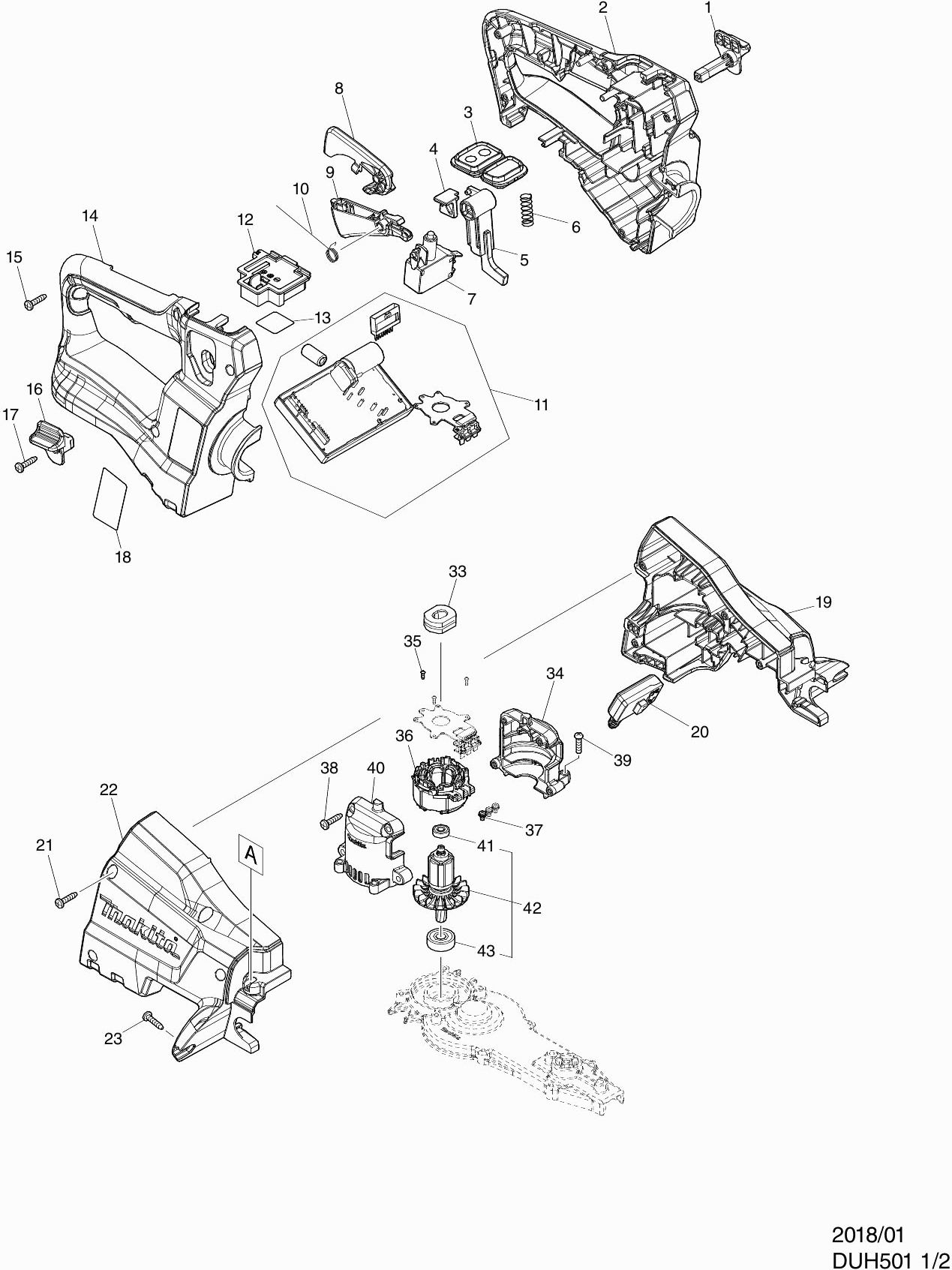 Spare parts list of model Makita DUH501Z