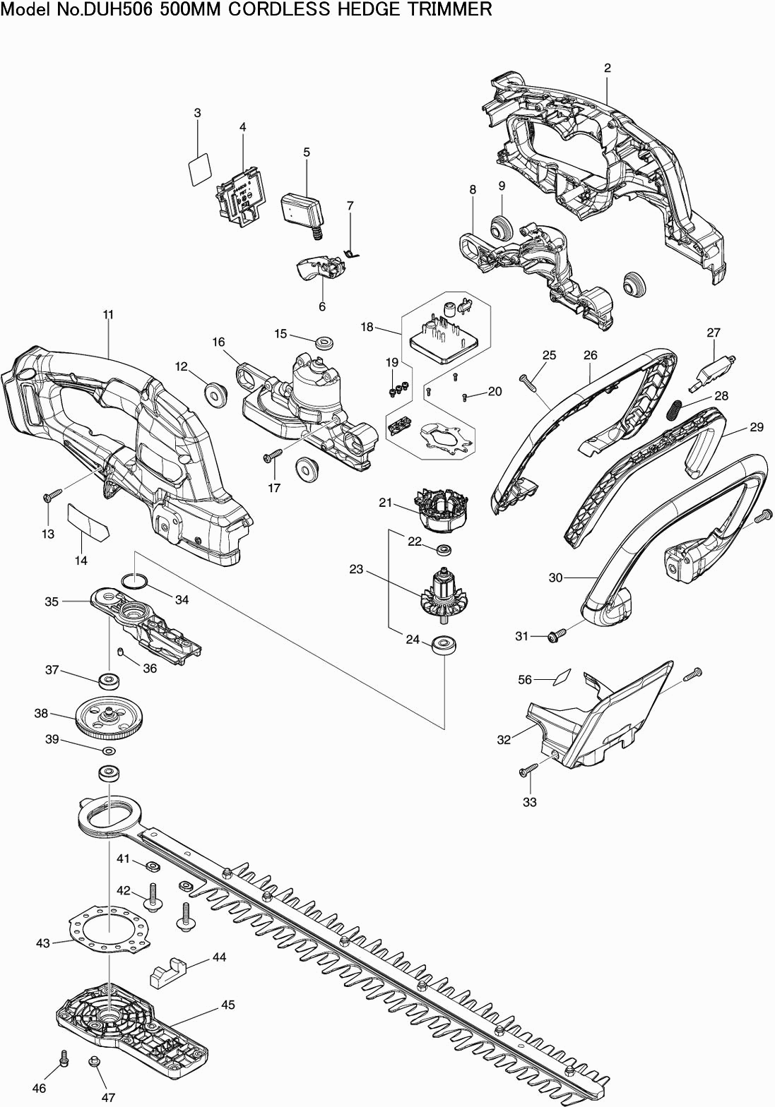Here you will find all available parts and drawings of the 'Makita DUH506'. From here you can order all desired parts directly. Many parts must be ordered from the manufacturer, depending on the brand, this takes one to four weeks. All the information we have is on our website, we cannot advise you on what you need, for that you will need to return the machine for repair. Please note the following when ordering: