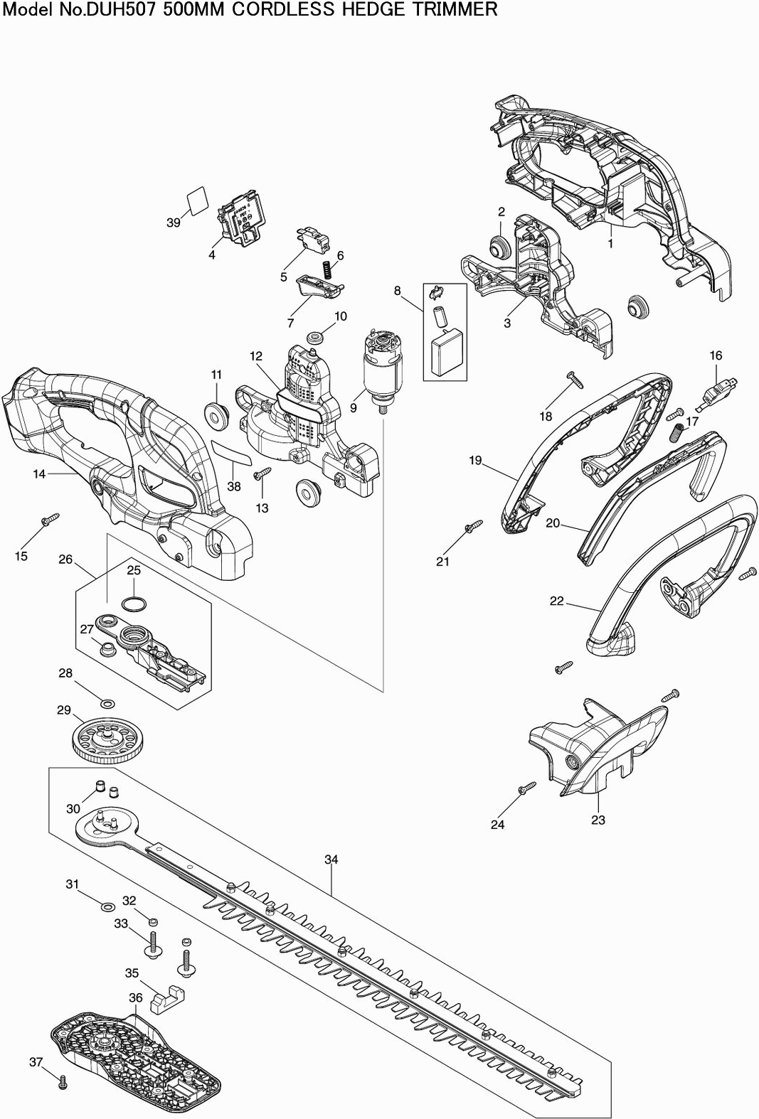 Here you will find all available parts and drawings of the 'Makita DUH507Z'. From here you can order all desired parts directly. Many parts must be ordered from the manufacturer, depending on the brand, this takes one to four weeks. All the information we have is on our website, we cannot advise you on what you need, for that you will need to return the machine for repair. Please note the following when ordering: