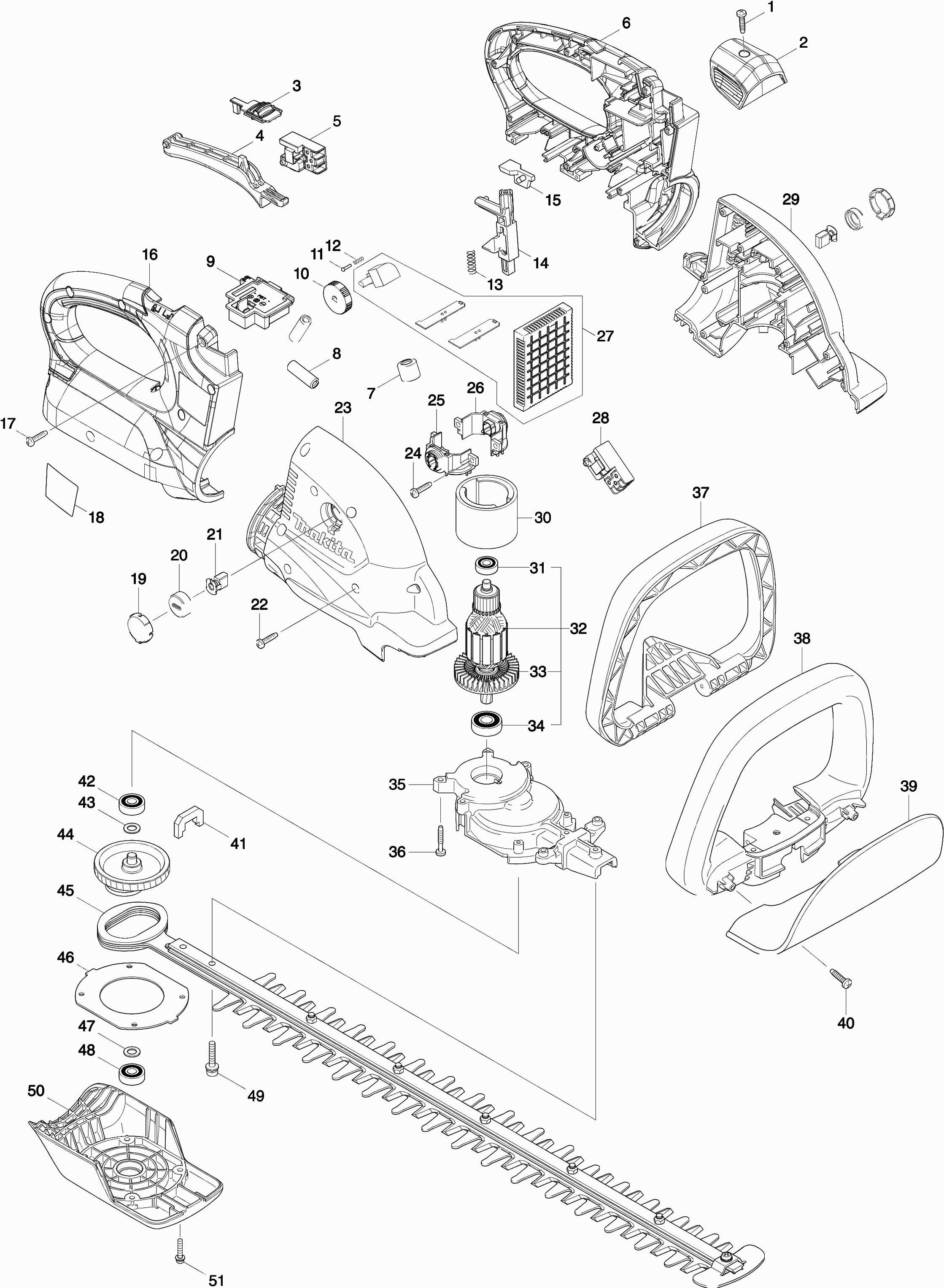 Here you will find all available parts and drawings of the 'Makita DUH551'. From here you can order all desired parts directly. Many parts must be ordered from the manufacturer, depending on the brand, this takes one to four weeks. All the information we have is on our website, we cannot advise you on what you need, for that you will need to return the machine for repair. Please note the following when ordering: