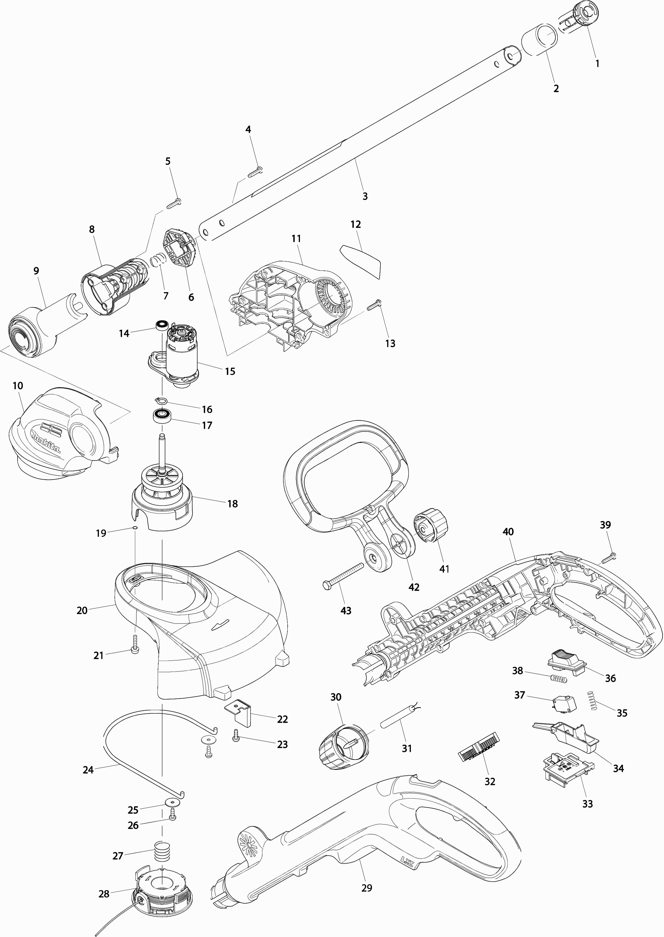 Here you will find all available parts and drawings of the 'Makita DUR141Z'. From here you can order all desired parts directly. Many parts must be ordered from the manufacturer, depending on the brand, this takes one to four weeks. All the information we have is on our website, we cannot advise you on what you need, for that you will need to return the machine for repair. Please note the following when ordering: