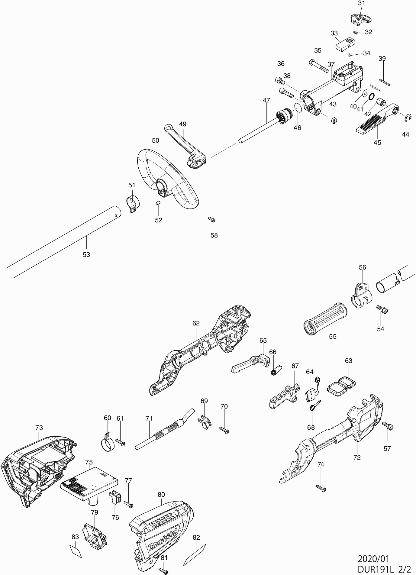 Here you will find all available parts and drawings of the 'Makita DUR191L'. From here you can order all desired parts directly. Many parts must be ordered from the manufacturer, depending on the brand, this takes one to four weeks. All the information we have is on our website, we cannot advise you on what you need, for that you will need to return the machine for repair. Please note the following when ordering: