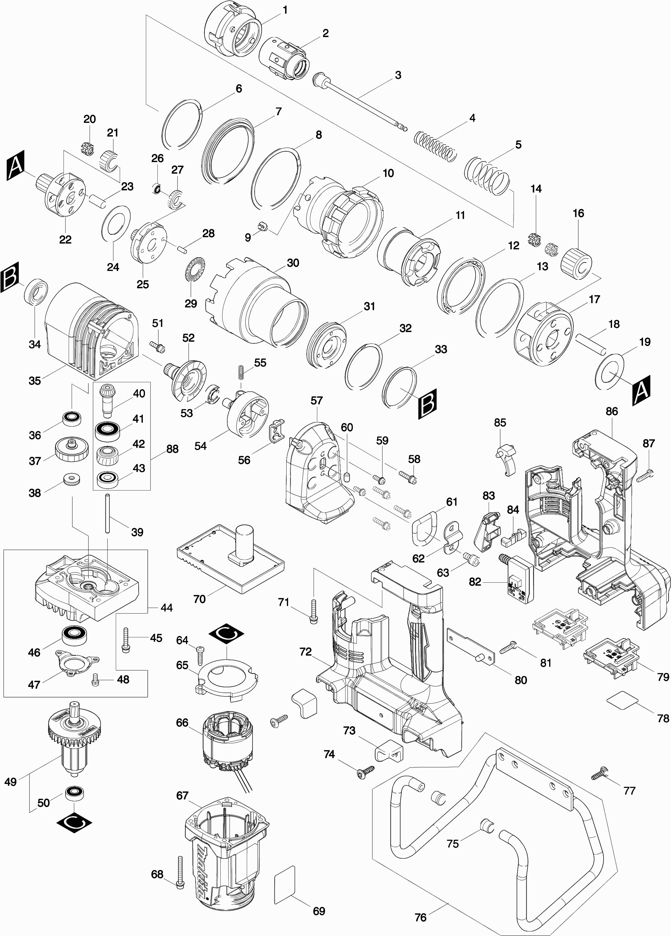 Here you will find all available parts and drawings of the 'Makita DWT310ZK'. From here you can order all desired parts directly. Many parts must be ordered from the manufacturer, depending on the brand, this takes one to four weeks. All the information we have is on our website, we cannot advise you on what you need, for that you will need to return the machine for repair. Please note the following when ordering: