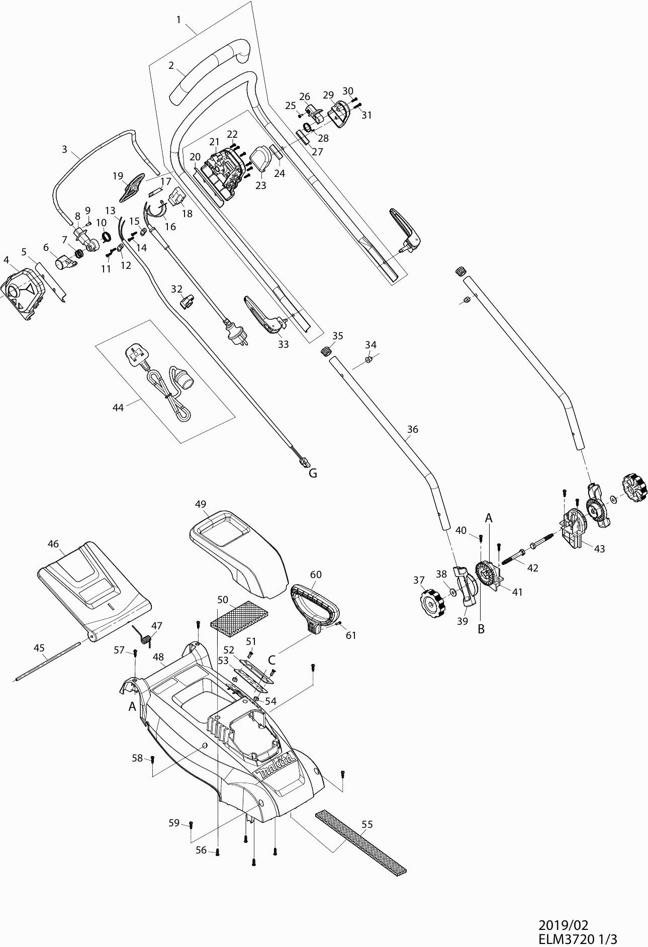 Here you will find all available parts and drawings of the 'Makita ELM3720'. From here you can order all desired parts directly. Many parts must be ordered from the manufacturer, depending on the brand, this takes one to four weeks. All the information we have is on our website, we cannot advise you on what you need, for that you will need to return the machine for repair. Please note the following when ordering: