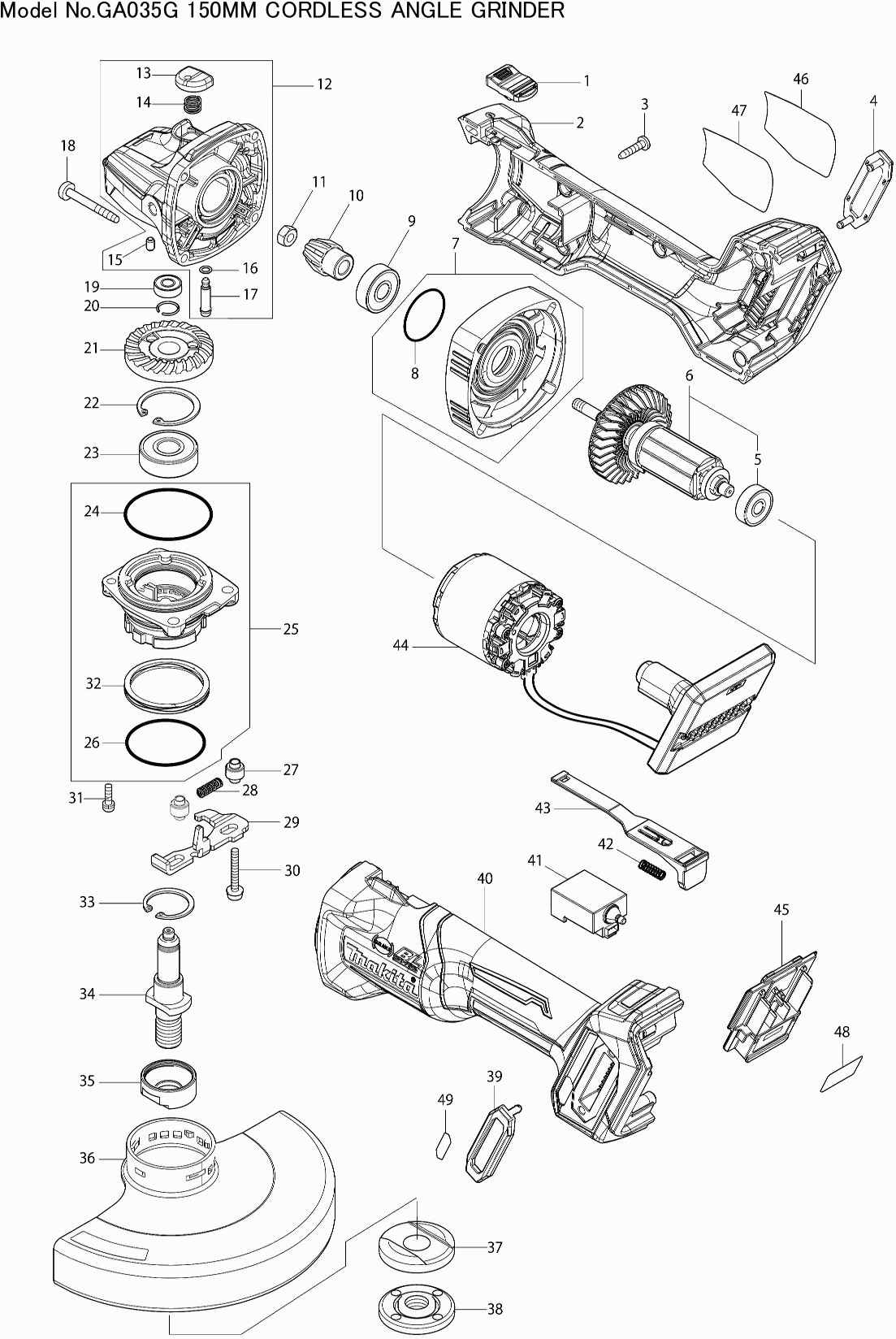 Technical drawing of model Makita GA035G