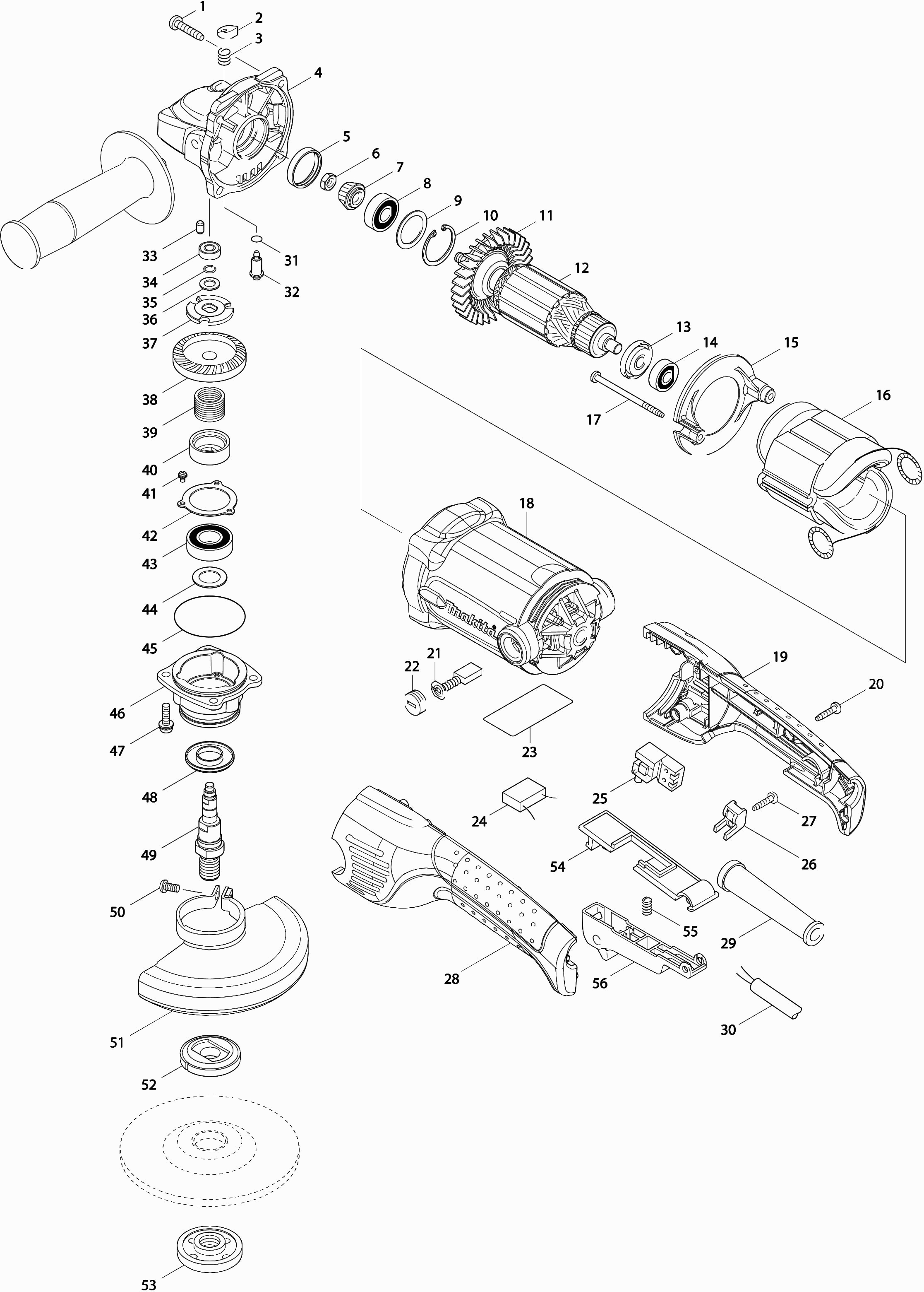 Here you will find all available parts and drawings of the 'Makita GA5021'. From here you can order all desired parts directly. Many parts must be ordered from the manufacturer, depending on the brand, this takes one to four weeks. All the information we have is on our website, we cannot advise you on what you need, for that you will need to return the machine for repair. Please note the following when ordering: