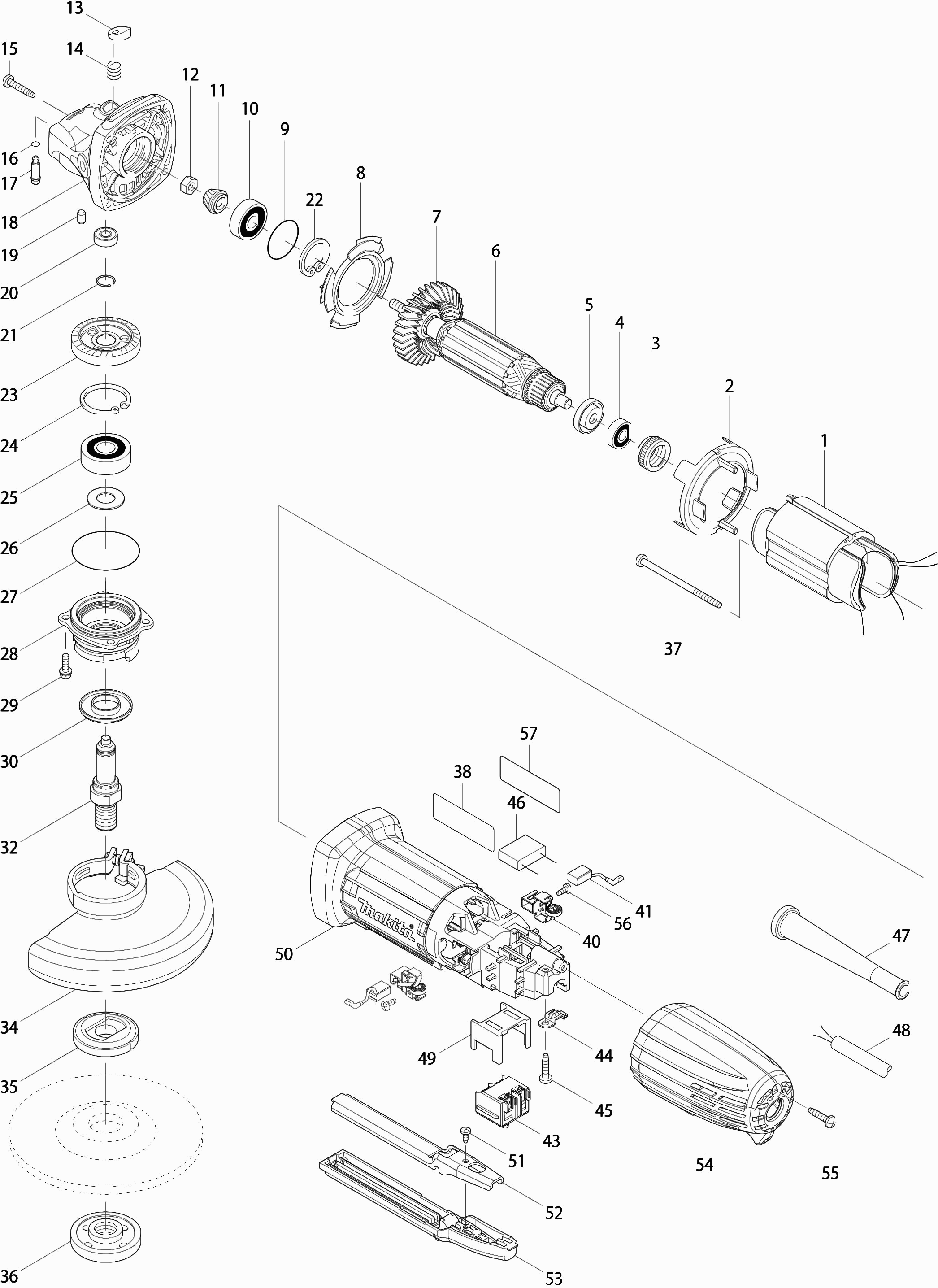 Here you will find all available parts and drawings of the 'Makita GA5034'. From here you can order all desired parts directly. Many parts must be ordered from the manufacturer, depending on the brand, this takes one to four weeks. All the information we have is on our website, we cannot advise you on what you need, for that you will need to return the machine for repair. Please note the following when ordering: