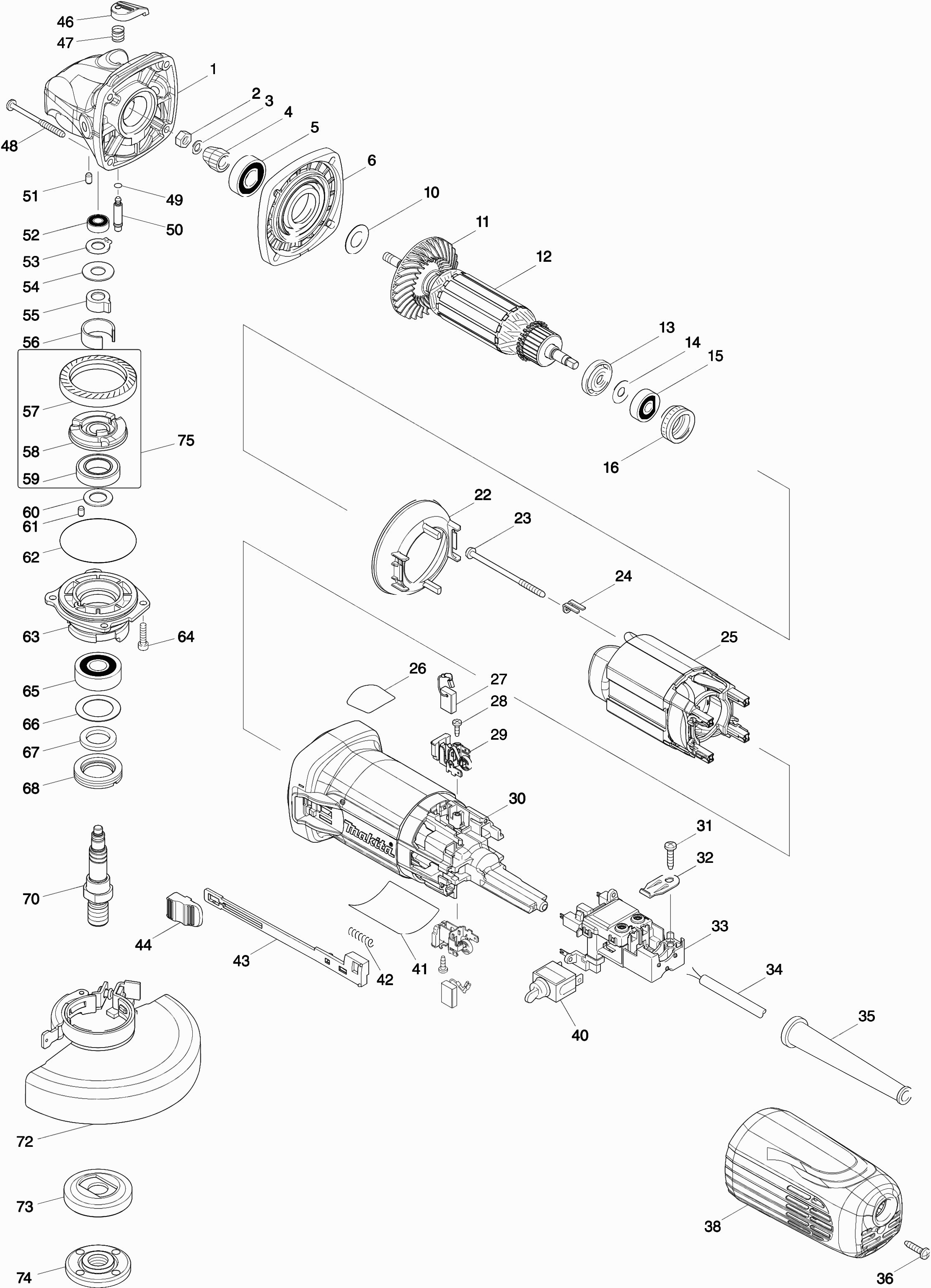 Here you will find all available parts and drawings of the 'Makita GA5040'. From here you can order all desired parts directly. Many parts must be ordered from the manufacturer, depending on the brand, this takes one to four weeks. All the information we have is on our website, we cannot advise you on what you need, for that you will need to return the machine for repair. Please note the following when ordering: