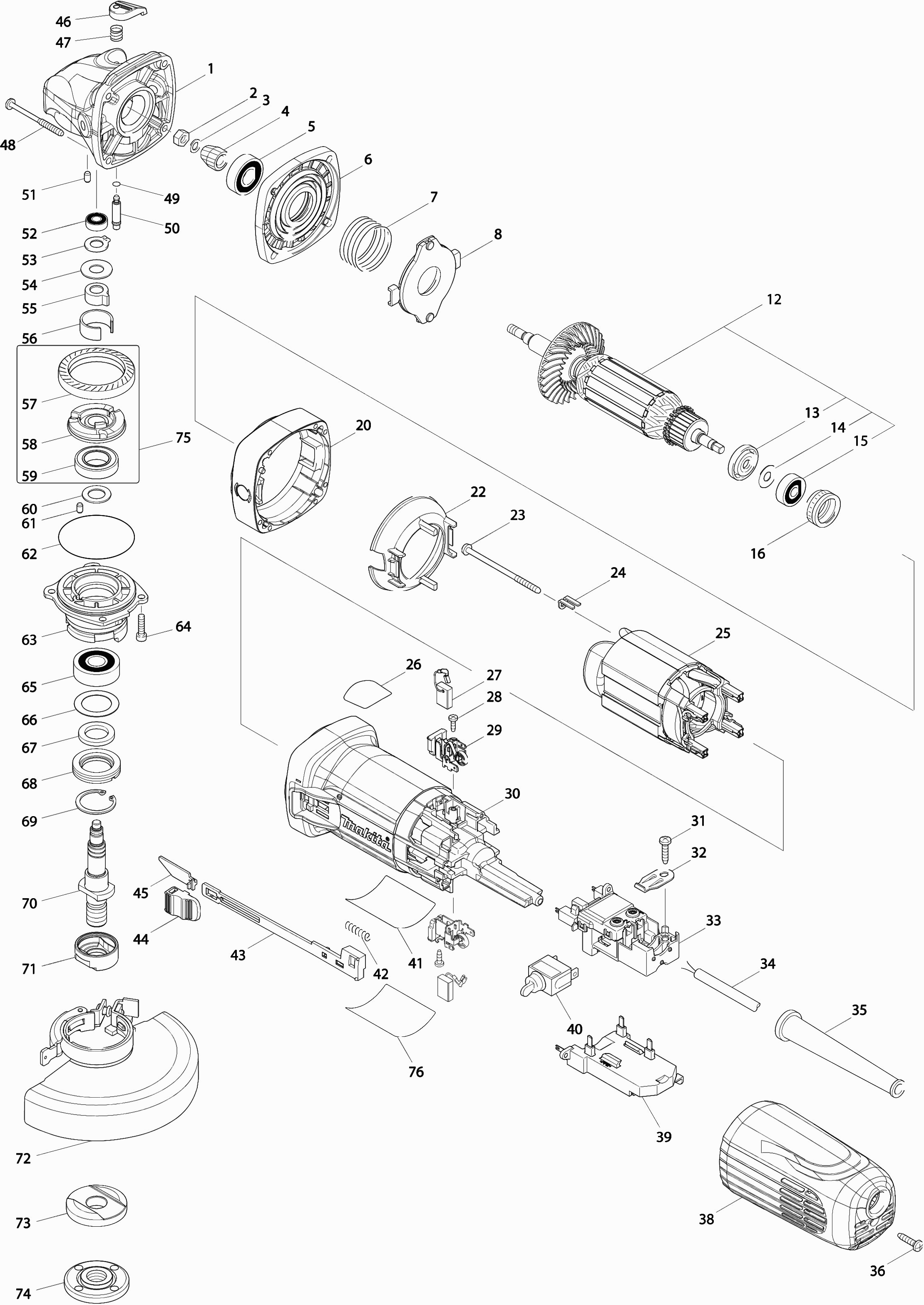 Here you will find all available parts and drawings of the 'Makita GA5041R'. From here you can order all desired parts directly. Many parts must be ordered from the manufacturer, depending on the brand, this takes one to four weeks. All the information we have is on our website, we cannot advise you on what you need, for that you will need to return the machine for repair. Please note the following when ordering: