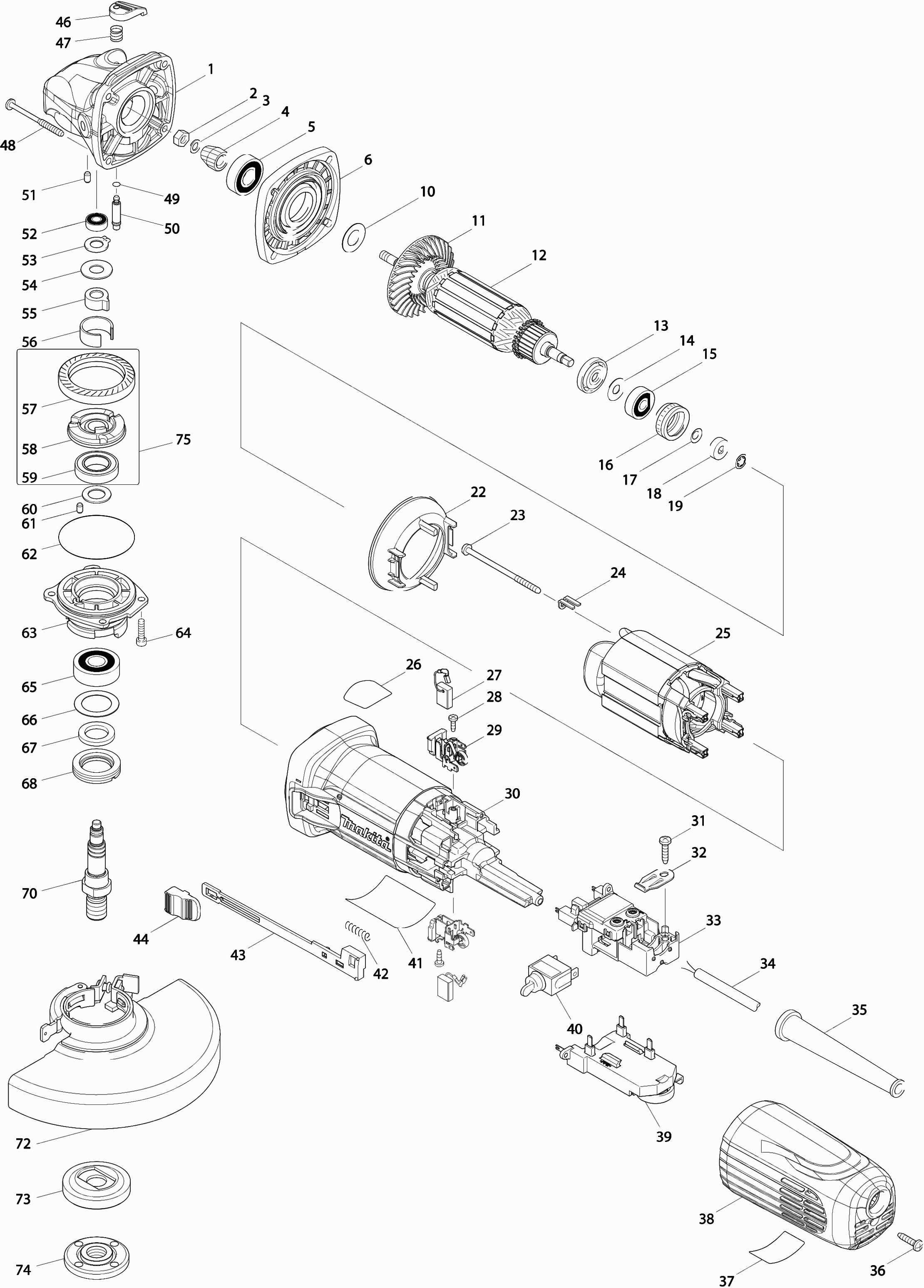 Here you will find all available parts and drawings of the 'Makita GA6040C'. From here you can order all desired parts directly. Many parts must be ordered from the manufacturer, depending on the brand, this takes one to four weeks. All the information we have is on our website, we cannot advise you on what you need, for that you will need to return the machine for repair. Please note the following when ordering: