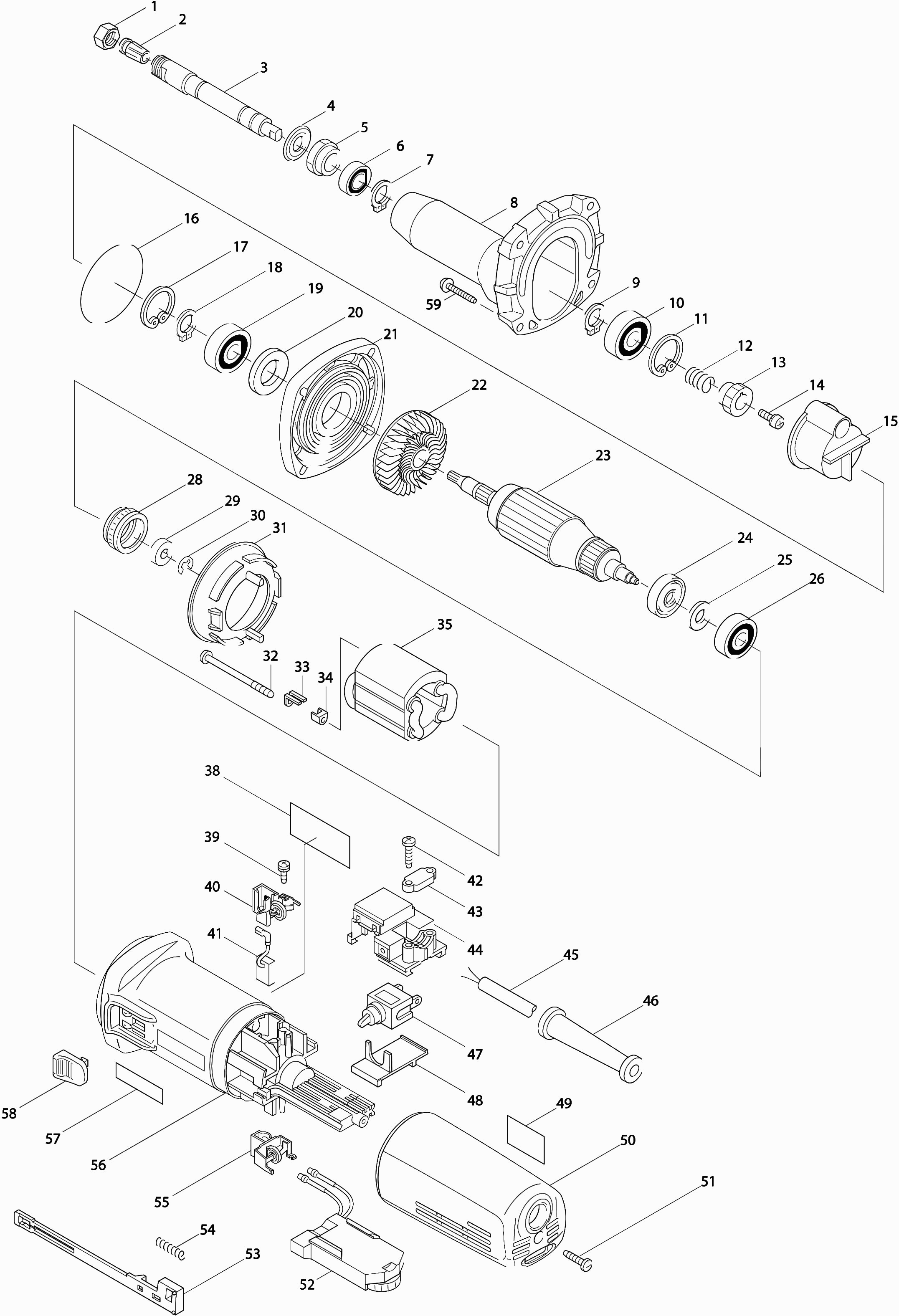 Here you will find all available parts and drawings of the 'Makita GD0810C'. From here you can order all desired parts directly. Many parts must be ordered from the manufacturer, depending on the brand, this takes one to four weeks. All the information we have is on our website, we cannot advise you on what you need, for that you will need to return the machine for repair. Please note the following when ordering: