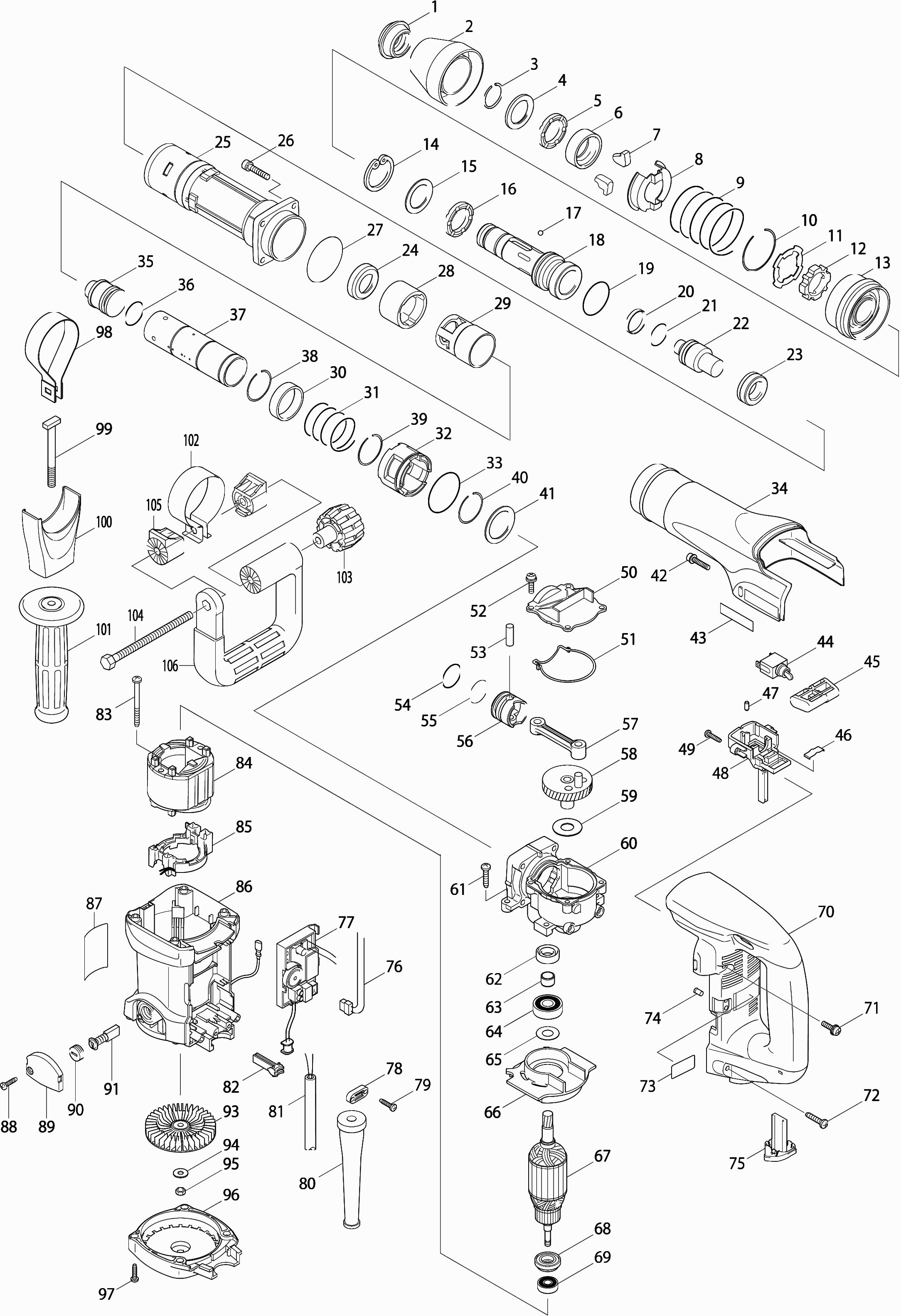 Here you will find all available parts and drawings of the 'Makita HM0860C'. From here you can order all desired parts directly. Many parts must be ordered from the manufacturer, depending on the brand, this takes one to four weeks. All the information we have is on our website, we cannot advise you on what you need, for that you will need to return the machine for repair. Please note the following when ordering: