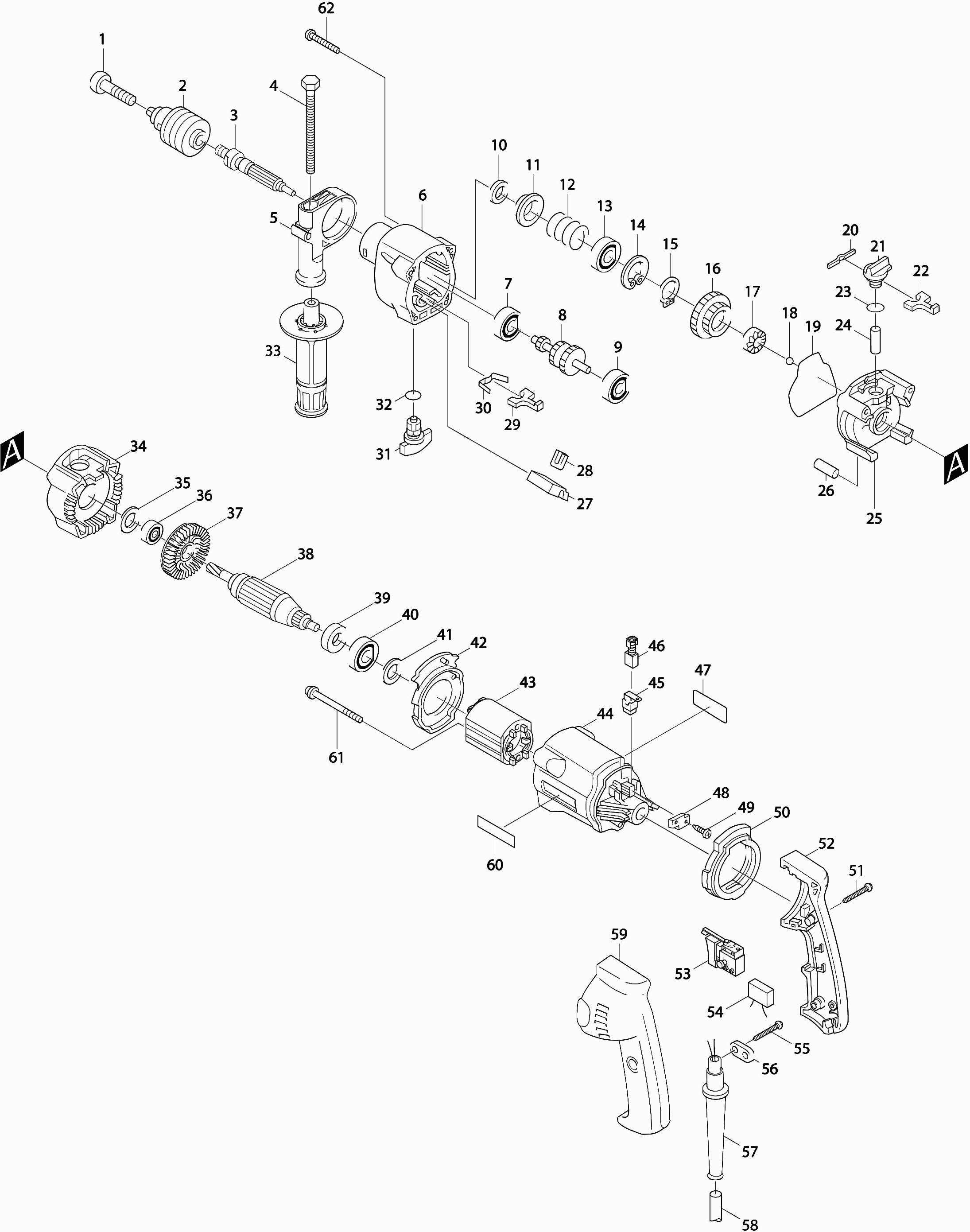 Here you will find all available parts and drawings of the 'Makita HP2030'. From here you can order all desired parts directly. Many parts must be ordered from the manufacturer, depending on the brand, this takes one to four weeks. All the information we have is on our website, we cannot advise you on what you need, for that you will need to return the machine for repair. Please note the following when ordering: