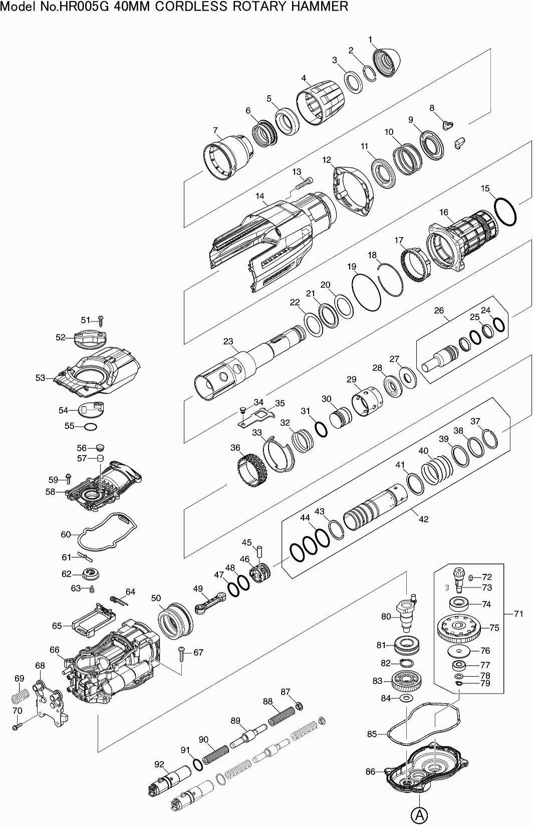 Here you will find all available parts and drawings of the 'Makita HR005G'. From here you can order all desired parts directly. Many parts must be ordered from the manufacturer, depending on the brand, this takes one to four weeks. All the information we have is on our website, we cannot advise you on what you need, for that you will need to return the machine for repair. Please note the following when ordering:
