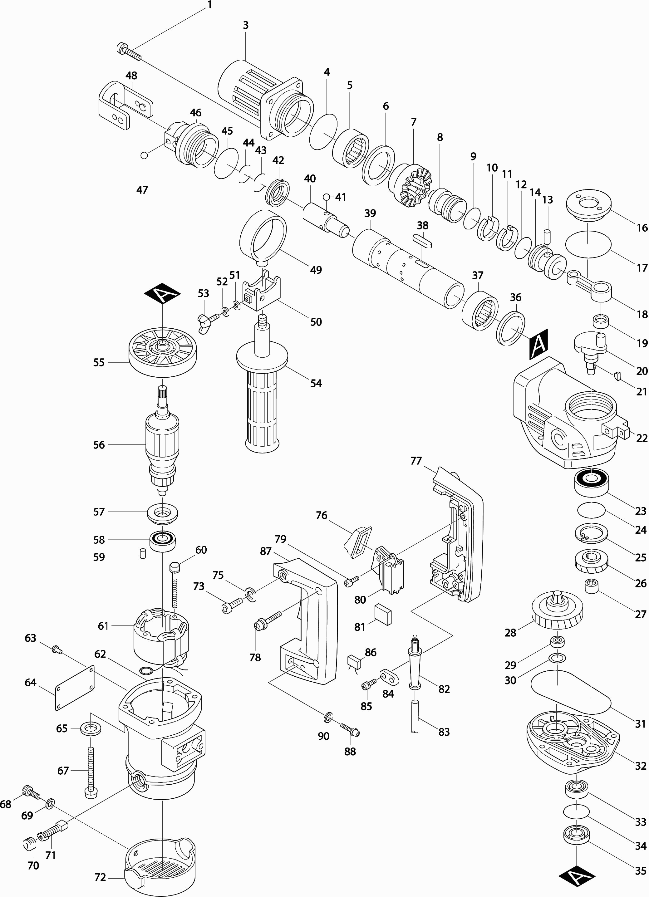 Here you will find all available parts and drawings of the 'Makita HR3520'. From here you can order all desired parts directly. Many parts must be ordered from the manufacturer, depending on the brand, this takes one to four weeks. All the information we have is on our website, we cannot advise you on what you need, for that you will need to return the machine for repair. Please note the following when ordering: