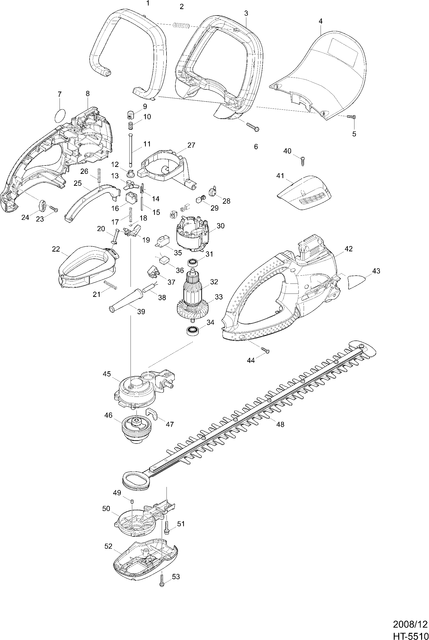 Here you will find all available parts and drawings of the 'Makita HT5510'. From here you can order all desired parts directly. Many parts must be ordered from the manufacturer, depending on the brand, this takes one to four weeks. All the information we have is on our website, we cannot advise you on what you need, for that you will need to return the machine for repair. Please note the following when ordering: