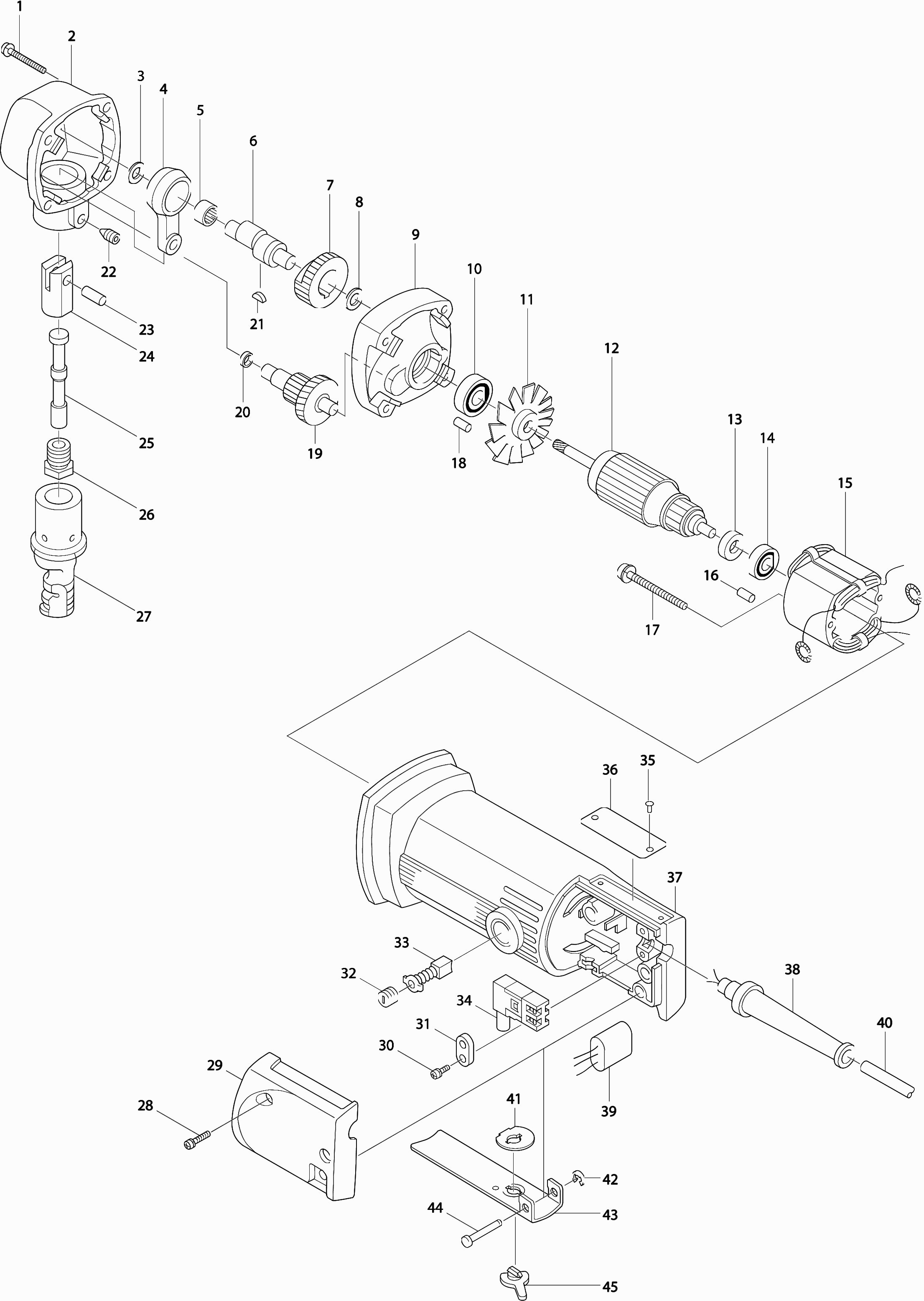 Here you will find all available parts and drawings of the 'Makita JN1600'. From here you can order all desired parts directly. Many parts must be ordered from the manufacturer, depending on the brand, this takes one to four weeks. All the information we have is on our website, we cannot advise you on what you need, for that you will need to return the machine for repair. Please note the following when ordering: