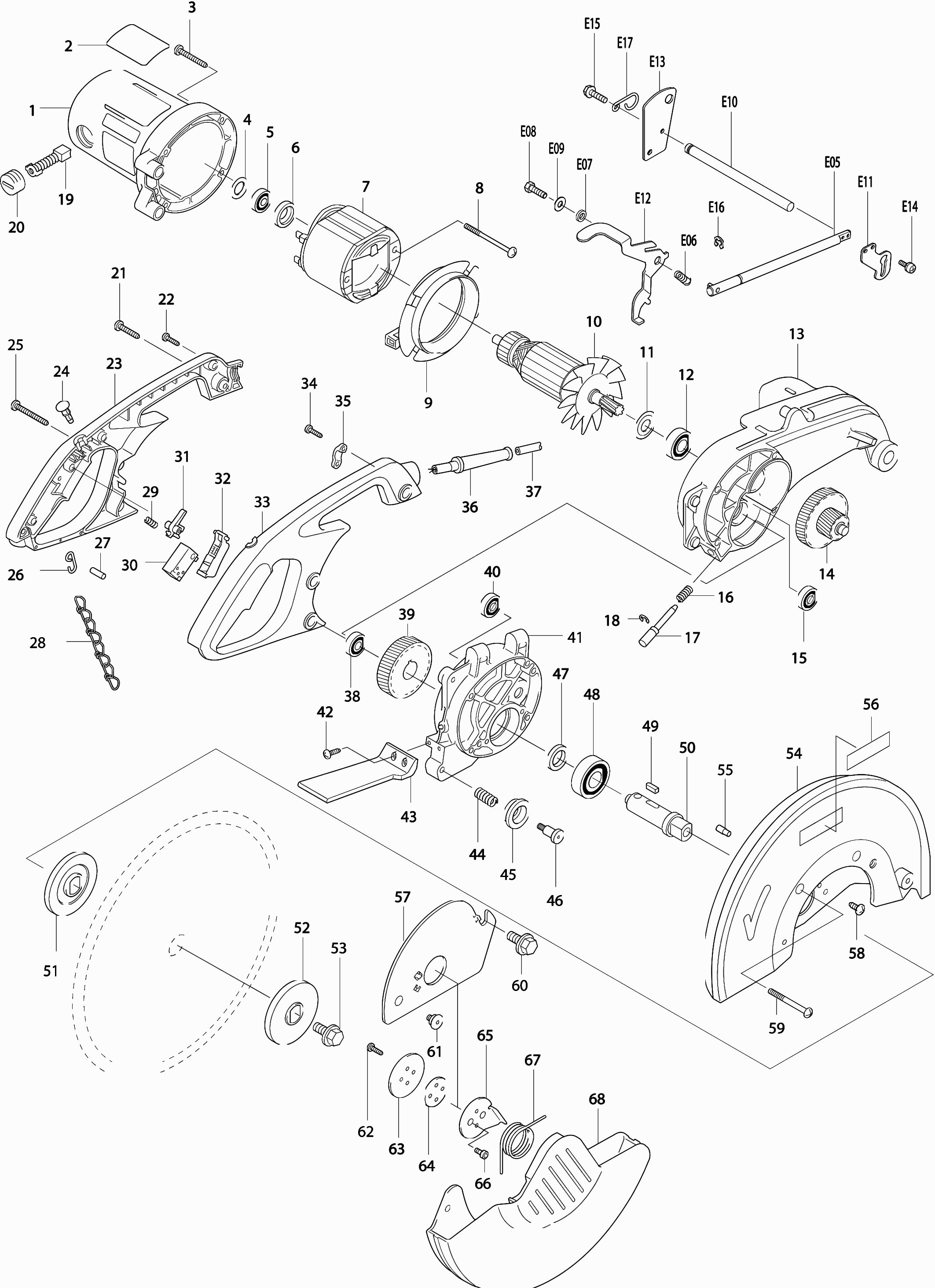 Here you will find all available parts and drawings of the 'Makita LC1230'. From here you can order all desired parts directly. Many parts must be ordered from the manufacturer, depending on the brand, this takes one to four weeks. All the information we have is on our website, we cannot advise you on what you need, for that you will need to return the machine for repair. Please note the following when ordering: