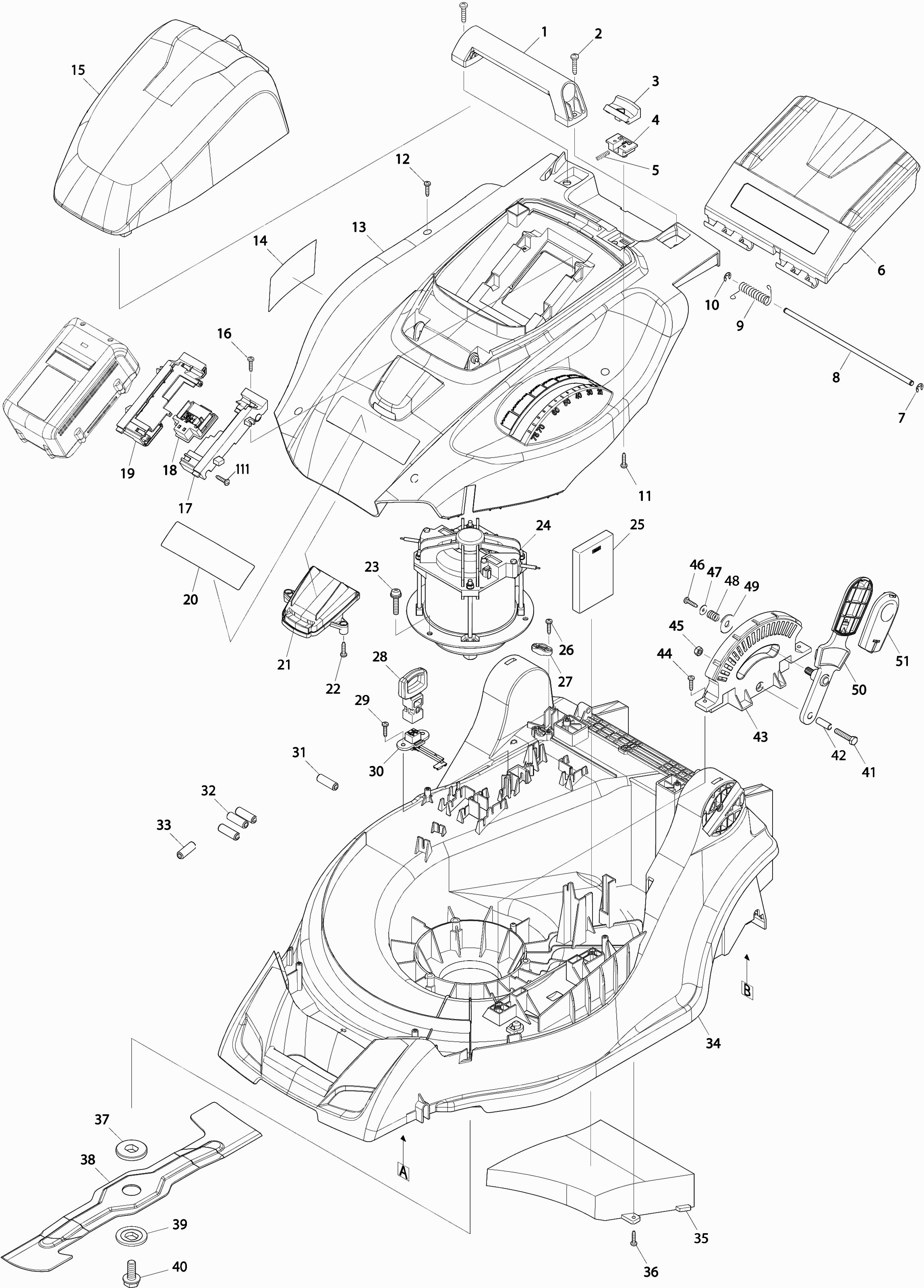 Here you will find all available parts and drawings of the 'Makita LM430DWBE'. From here you can order all desired parts directly. Many parts must be ordered from the manufacturer, depending on the brand, this takes one to four weeks. All the information we have is on our website, we cannot advise you on what you need, for that you will need to return the machine for repair. Please note the following when ordering: