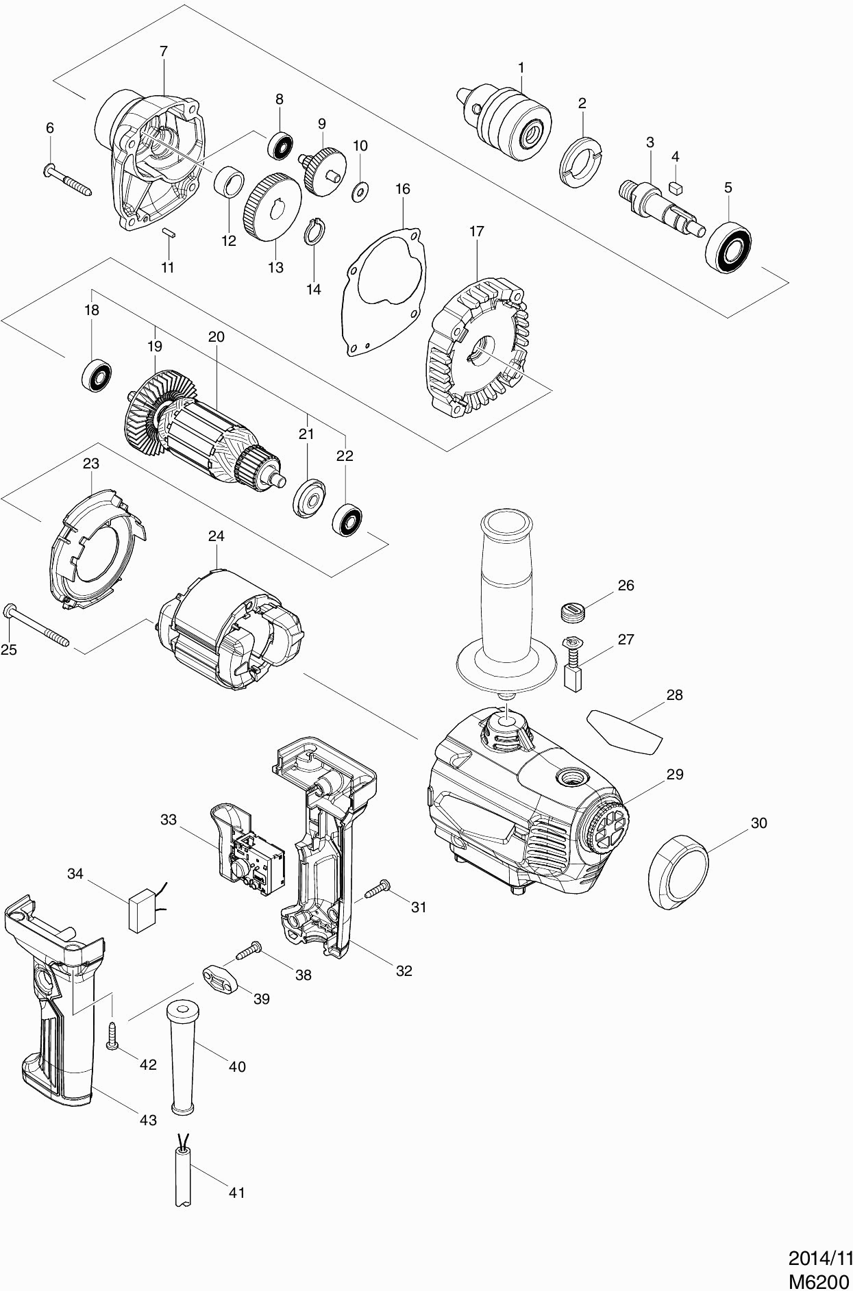 Spare parts list of model Makita M6200
