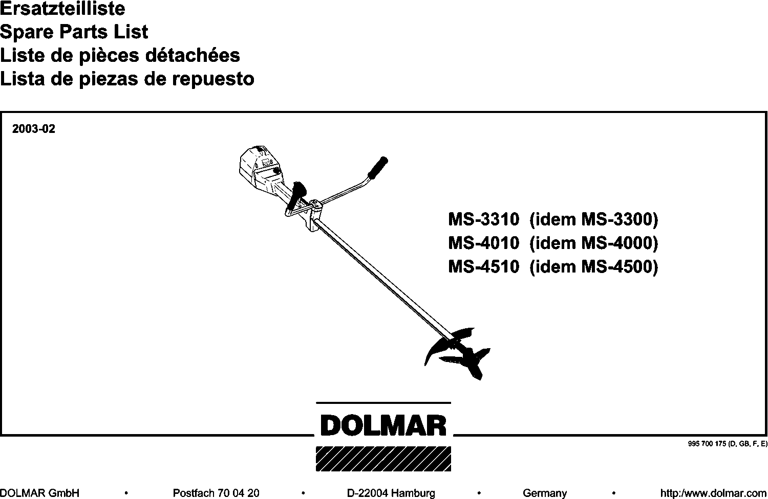 Spare parts list of model Makita MS4500