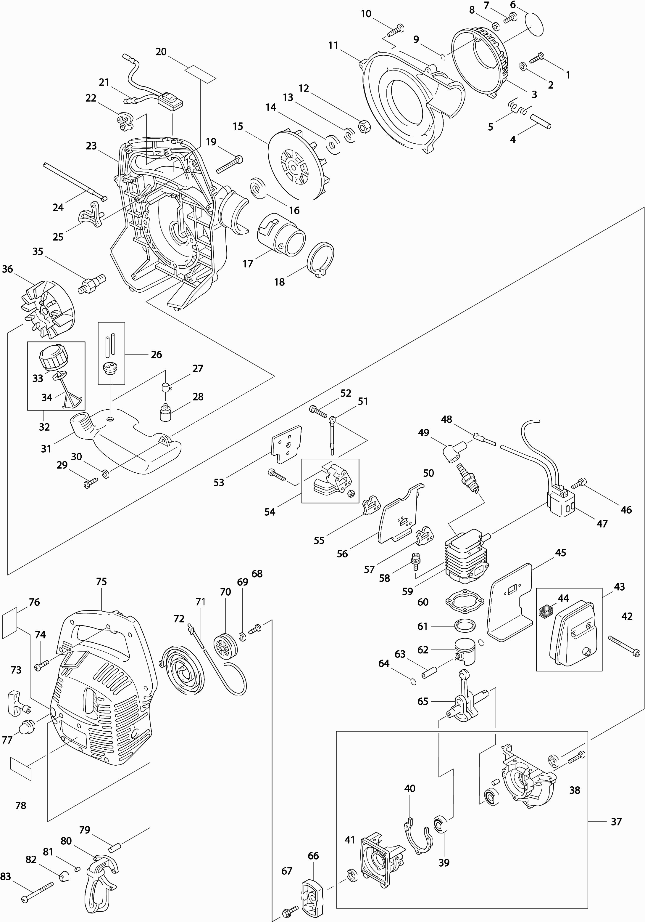 Here you will find all available parts and drawings of the 'Makita RBLV250'. From here you can order all desired parts directly. Many parts must be ordered from the manufacturer, depending on the brand, this takes one to four weeks. All the information we have is on our website, we cannot advise you on what you need, for that you will need to return the machine for repair. Please note the following when ordering: